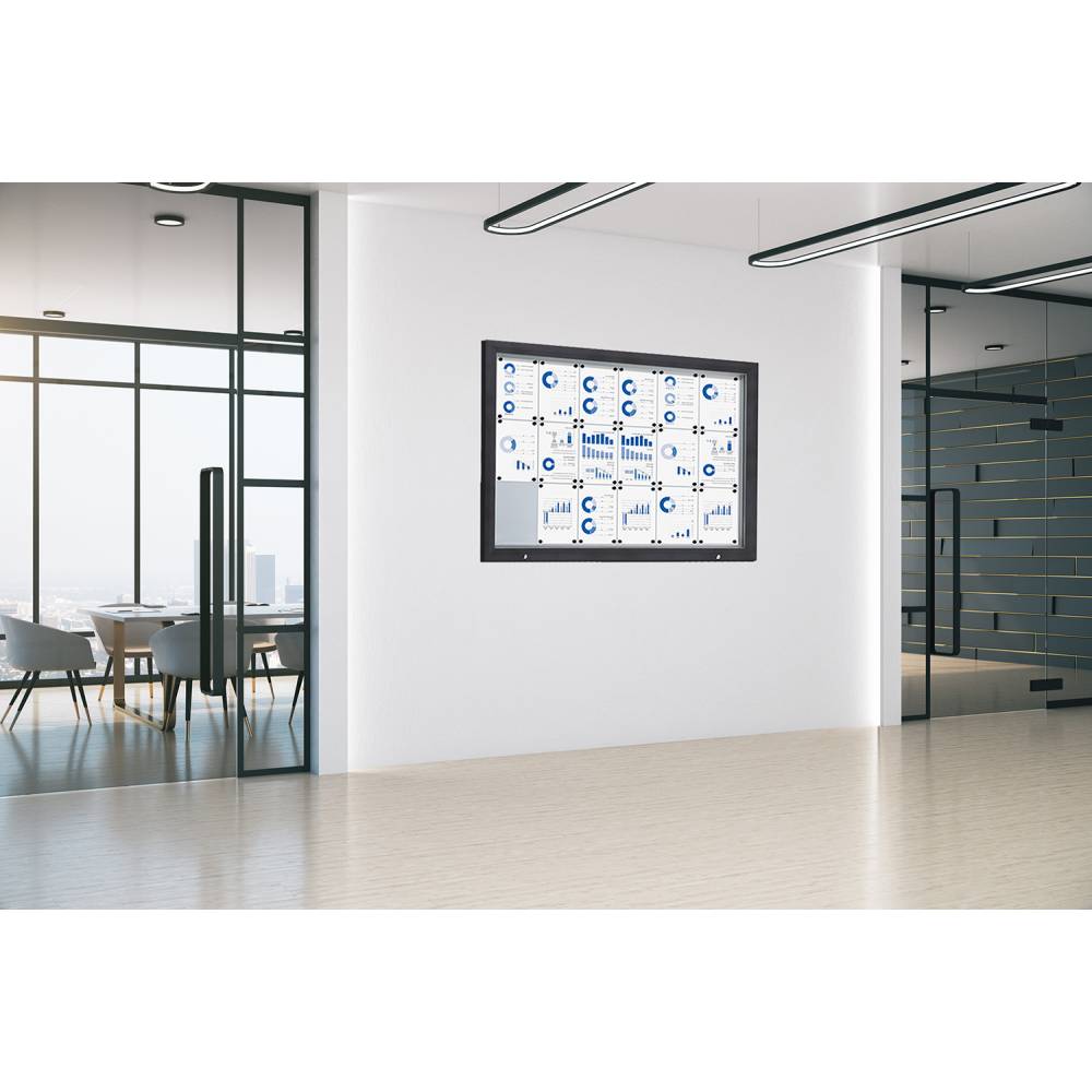 A vitrin egyik legnagyobb előnye a rugalmassága: lehetővé teszi, hogy az üzeneteit könnyedén kihelyezze a para háttámlával ellátott verzió esetén tűzéssel, vagy az acél hátlap verziónál mágnesekkel. Ezáltal különféle kommunikációs igényeket is kielégít, legyen szó információk közléséről, hirdetések elhelyezéséről vagy akár fontos üzenetek megosztásáról egy forgalmas helyszínen.
