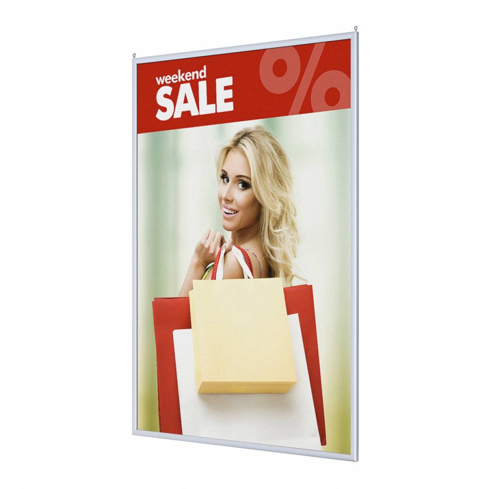 • Ideális mennyezeti felfüggesztéshez, felülről becsúsztatható poszter, tökéletes megoldás kirakati vagy üzlethelyiségen belüli promócióhoz