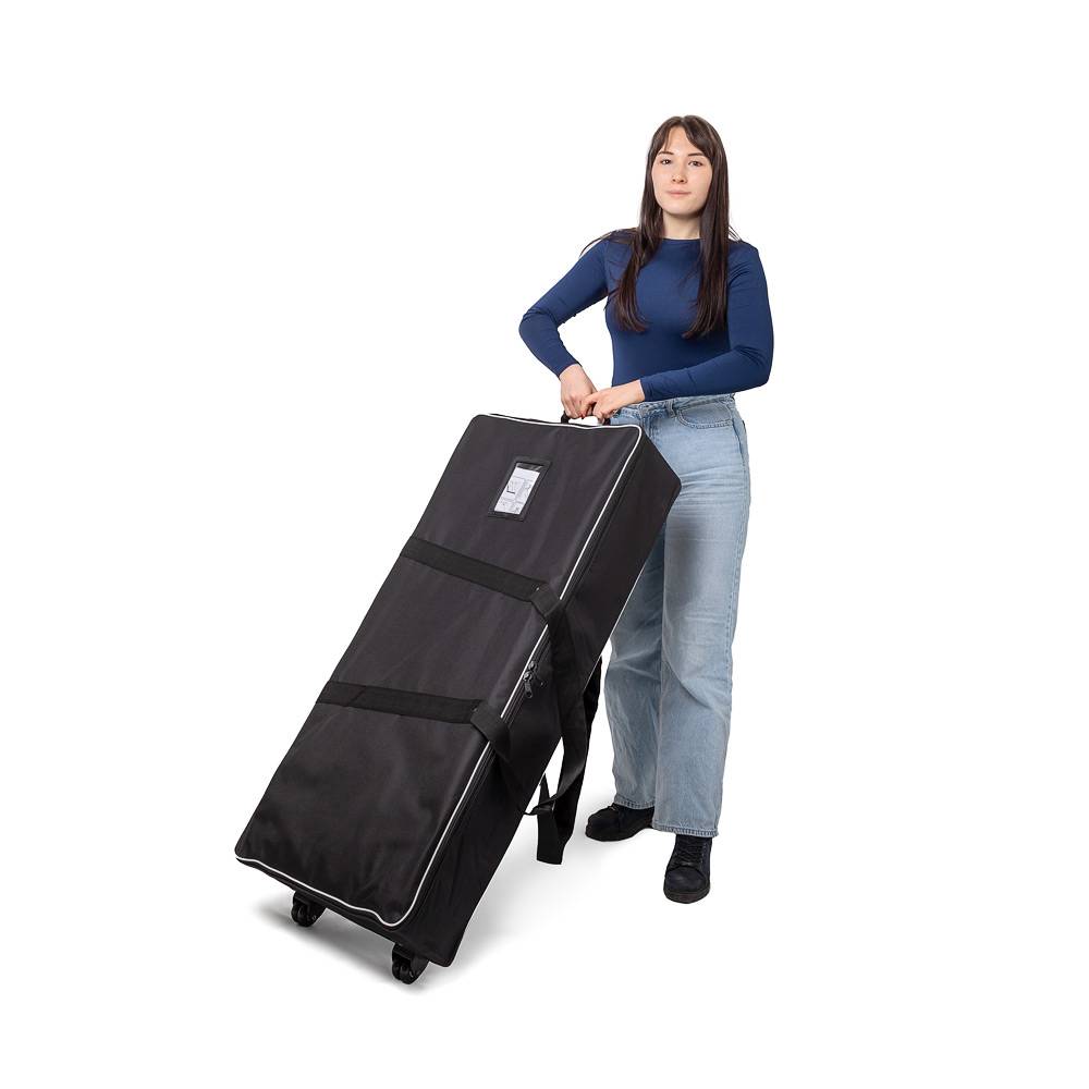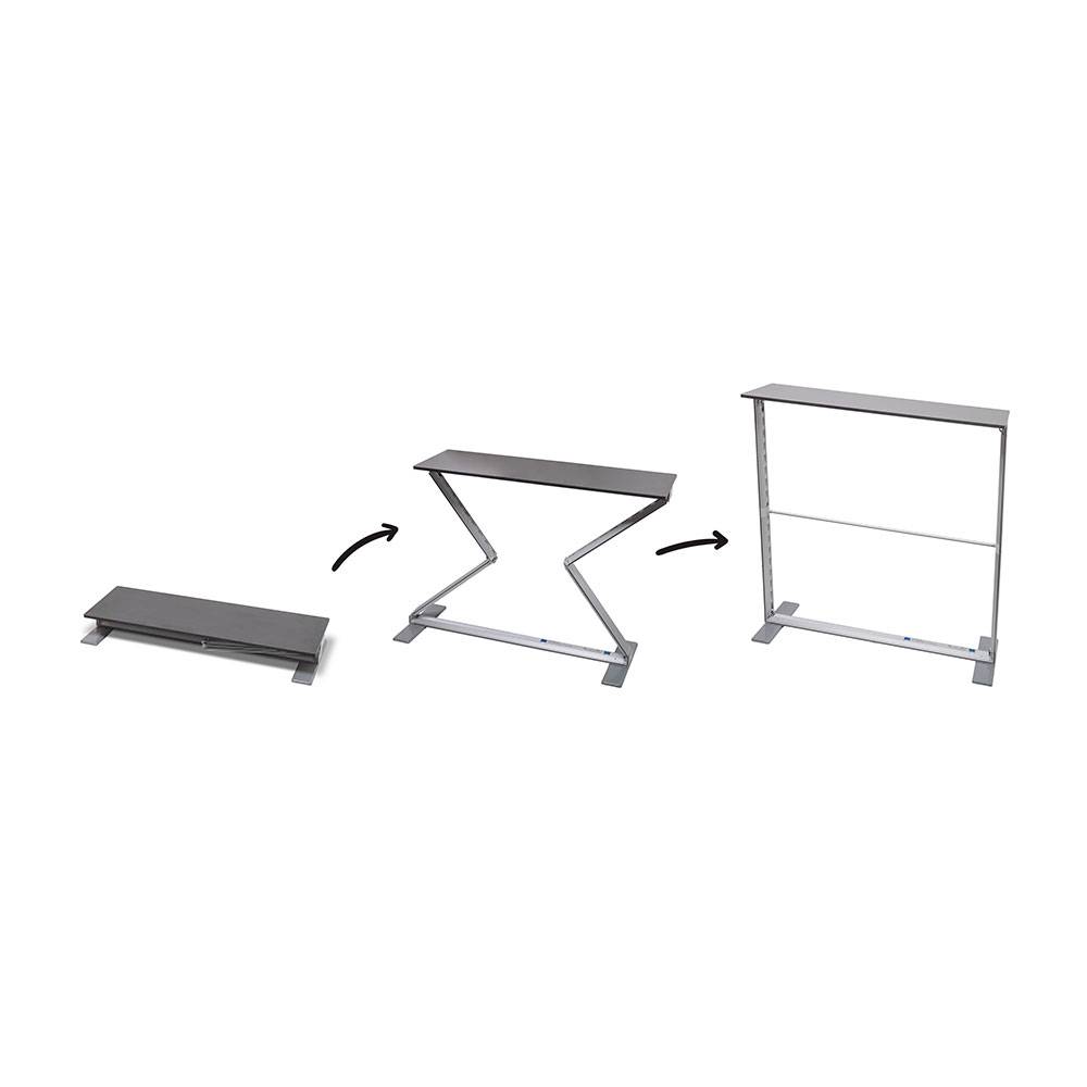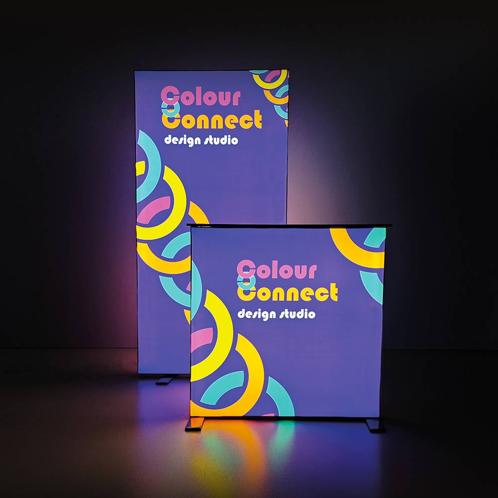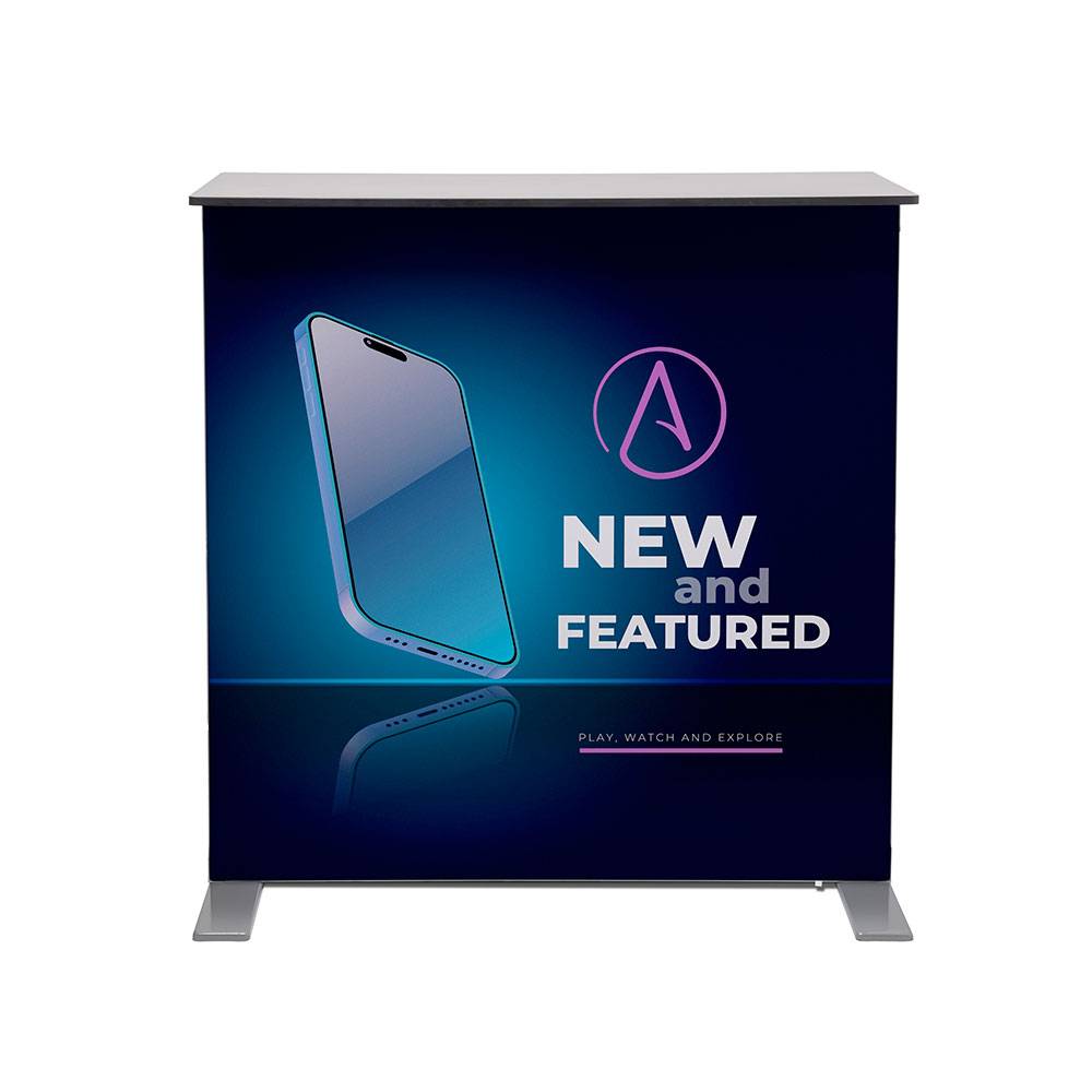 Keltsd fel mindenki figyelmét a márkádra vagy reklámodra a Brightbox Fold & Go promóciós pulttal! Ez a pult mindössze három lépésben készen áll a használatra: vedd ki a hordtáskából, nyisd szét, majd rögzítsd a középső merevítőrudat a szerkezet megerősítéséhez! Már csak egy lépés van hátra: húzd rá az élénk színekben pompázó, szilikonszegéllyel ellátott nyomtatott textilgrafikát – és kész is vagy!