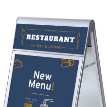 A COMPASSO Megállítótábla egy kiváló választás, ha figyelemfelkeltő és elegáns reklámmegoldást keres. A megállítótábla lekerekített, elegáns felső profiljával és időjárásálló kivitelével biztosítja, hogy poszterei védve legyenek, miközben kitűnnek a tömegből. Ez a megállítótábla nemcsak stabilitásával, hanem esztétikus megjelenésével is lenyűgözi a járókelőket, így tökéletes eszköz üzenetei megjelenítésére bármilyen környezetben.