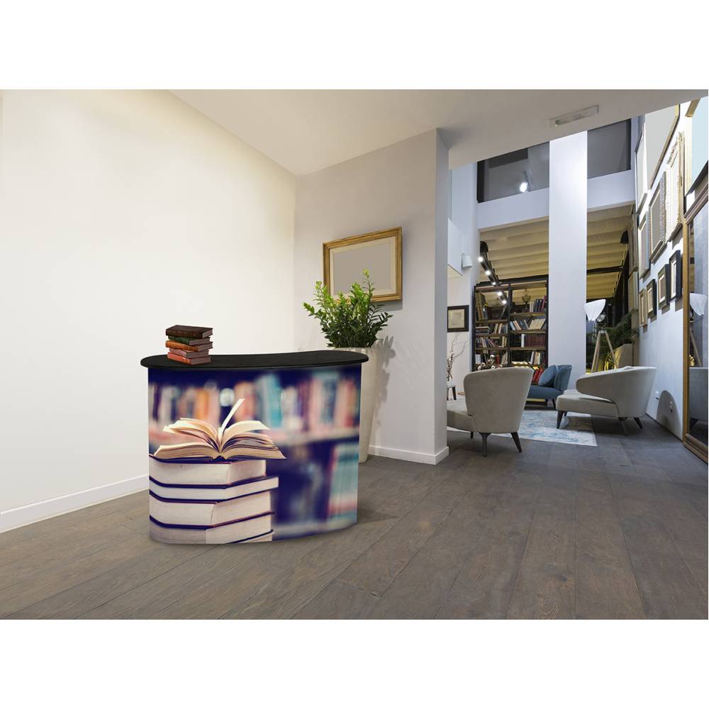 A kínáló pultok számos előnnyel rendelkeznek, különösen a kiállításokon és rendezvényeken való használat szempontjából. Az elsődleges előnyük, hogy hordozhatók és könnyen összeszerelhetők, ami megkönnyíti a gyakori helyszínváltást. Ezek a pultok kompakt méretüknek köszönhetően egyszerűen szállíthatók, mégis elég nagyok ahhoz, hogy hatékonyan jelenítsenek meg grafikai elemeket vagy promóciós anyagokat. A Counter Professional Original például praktikus kampós tépőzáras rendszerrel rendelkezik, amely egyszerűvé és gyorssá teszi a grafika rögzítését és cseréjét.