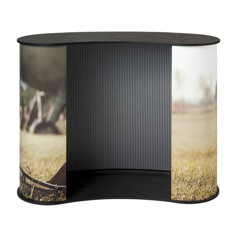 Az ívelt forma és a belső tárolóhely további kényelmet és funkcionalitást nyújt. A pulton belüli tárolóterület lehetővé teszi, hogy minden szükséges anyagot kéznél tartsanak, így a bemutató még zökkenőmentesebb és rendezettebb lesz. Ezen kívül az opcionális polcok tovább fokozzák a praktikusságot, mivel többféle tárolási lehetőséget kínálnak, és gyors hozzáférést biztosítanak a szükséges tárgyakhoz.