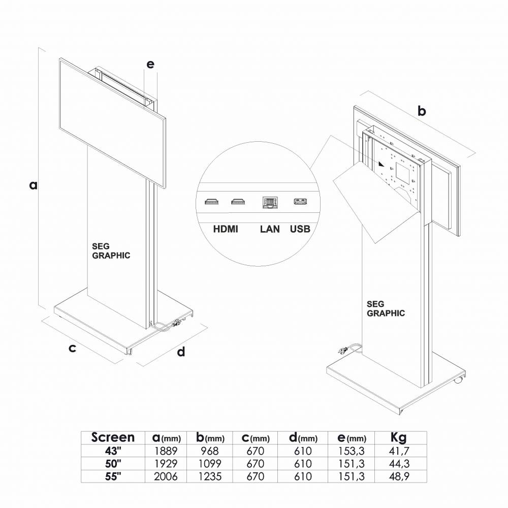 - Available with professional Samsung screens (ESF codes) or with universal VESA screen holder
