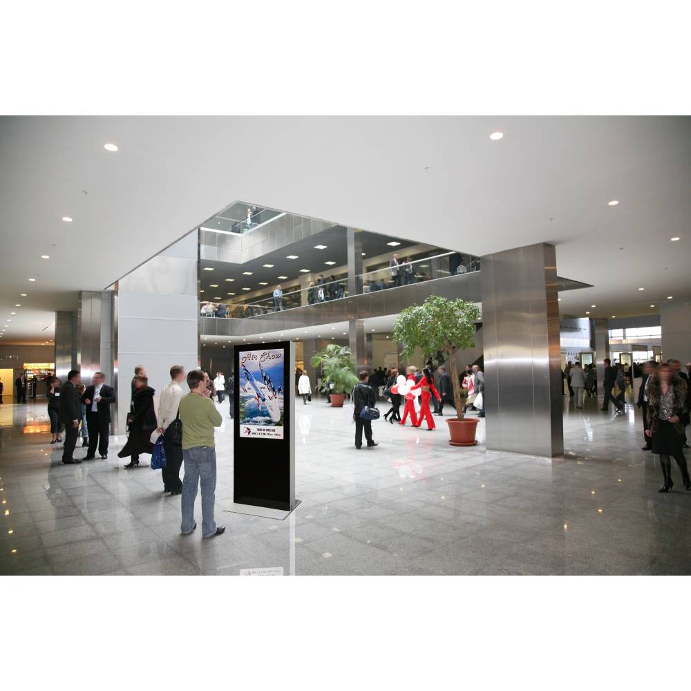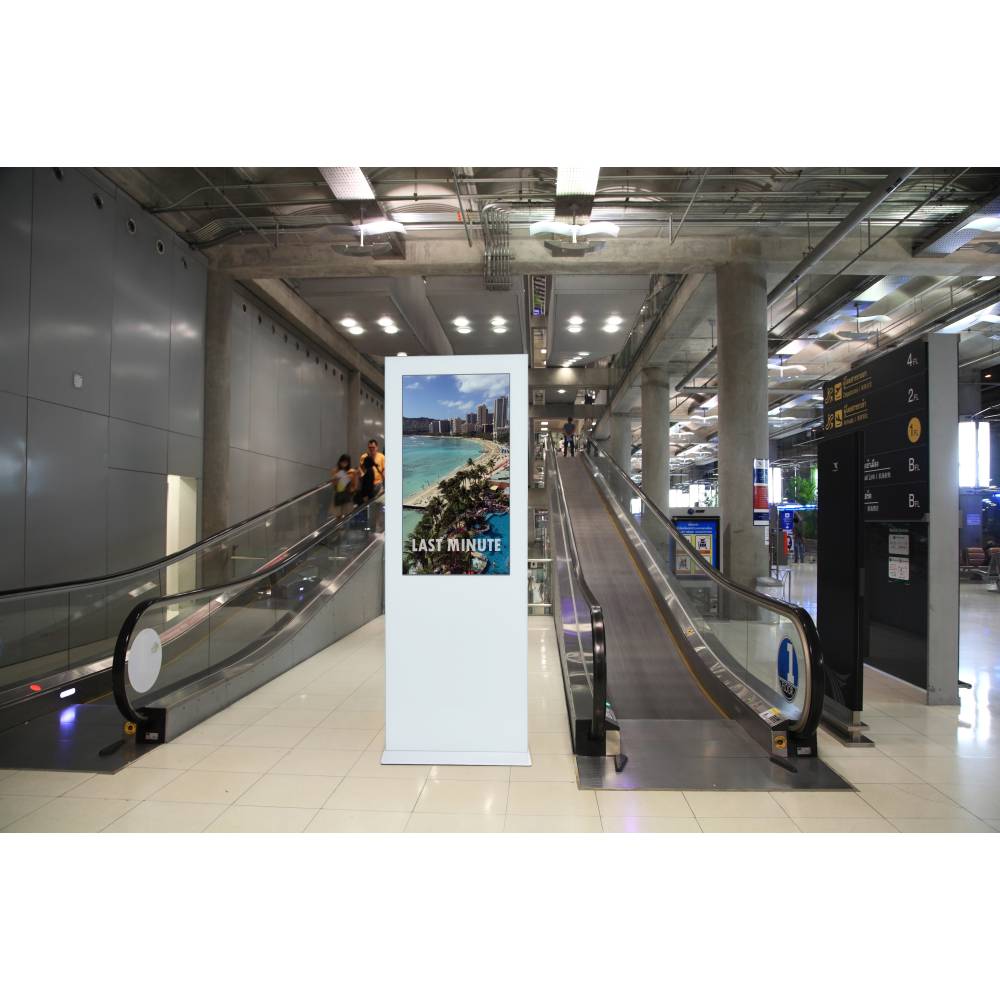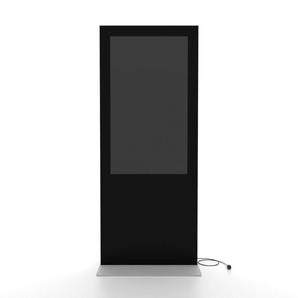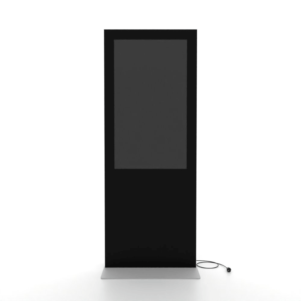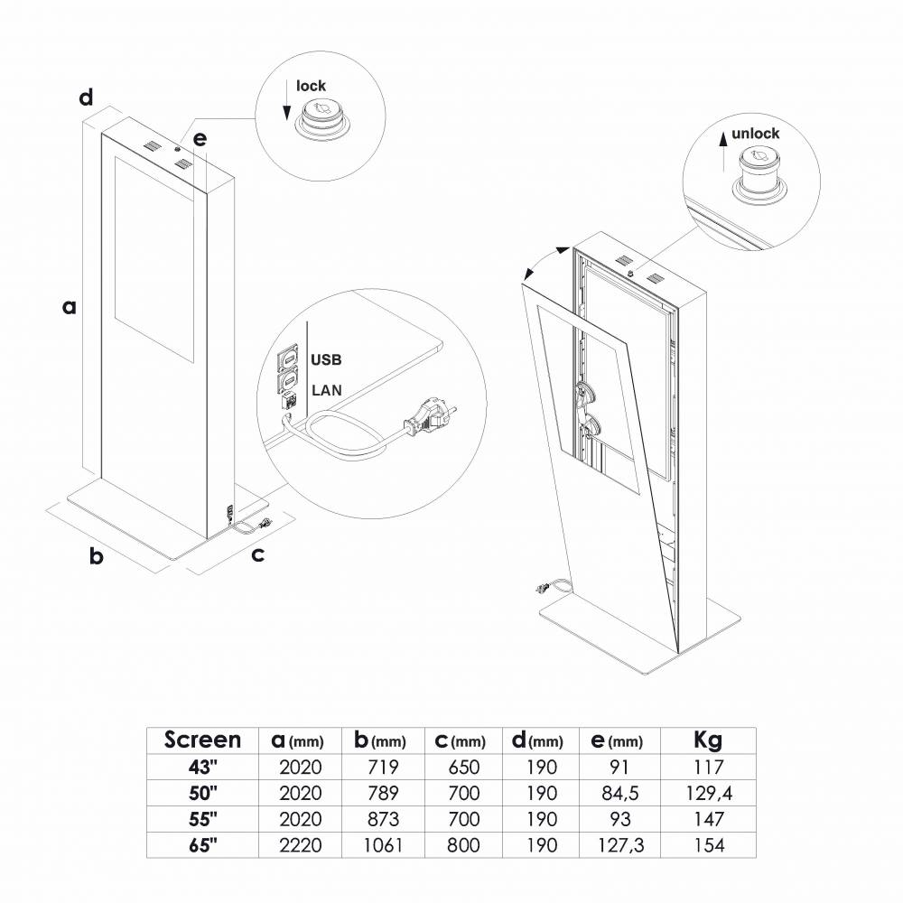 A SLIM DOUBLE Digitális Kétoldalas Totemoszlop igényesen és biztonságosan teszi lehetővé digitális tartalmainak kétirányú prezentálását. Az elegáns és esztétikus megjelenés mellett biztonságos is, hiszen magas minőségű alumínium panelekből és acéllemezekből készült, a képernyőket pedig edzett üveg védi mindkét oldalon. A totemben található szellőztető rendszer védi a képernyőket a porosodás és a túlmelegedés ellen. A kétoldalas kivitelezésnek köszönhetően minden irányból felkeltheti tartalmaira a figyelmet, amit plug&play módon USB-ről vagy Wifin keresztül tartalomkezelő szoftverből is megadhat. A két oldalon egymástól különböző digitális tartalmak futtatására is van lehetőség. A 8mm vastag acél talapzat biztosítja a stabilitást, de igény esetén csavarokkal az aljzathoz is rögzíthető. Rendelhető kiváló minőségű Samsung digitális kijelzővel vagy igény esetén kijelző nélkül. Érintő fólia applikálható az edzett üvegpanelhoz, amely által gyorsan és költséghatékonyan interaktívvá teheti digitális totemoszlopát.
