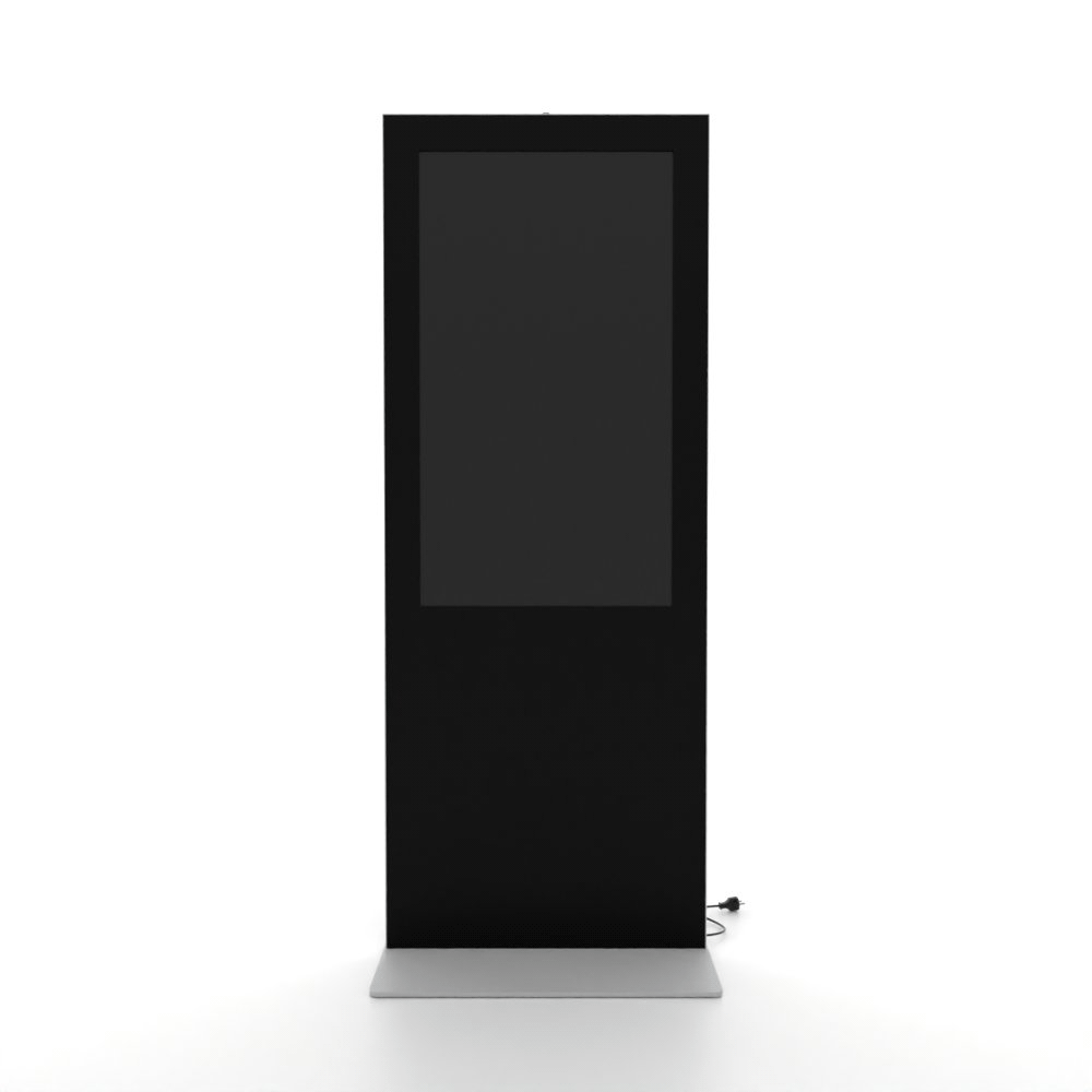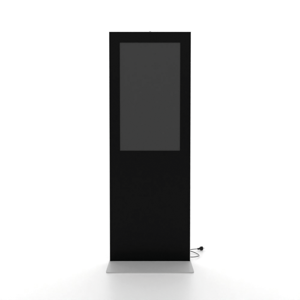 A ház rendkívül tartós alumíniumból és edzett üvegből készül, hogy megvédje a belső professzionális Samsung képernyőt. A 8 mm vastag acéllemez alap biztosítja a jó stabilitást. Lehetőség van arra is, hogy az egyedi módosított alapot szállítsuk, amely lehetővé teszi a totem padlóhoz való rögzítését rögzítőcsavarokkal (nem tartozék). A totem 43", 50", 55" és 65" képernyőkkel érhető el. A ház alapszíne fekete, de más RAL színek is elérhetők igény szerint.