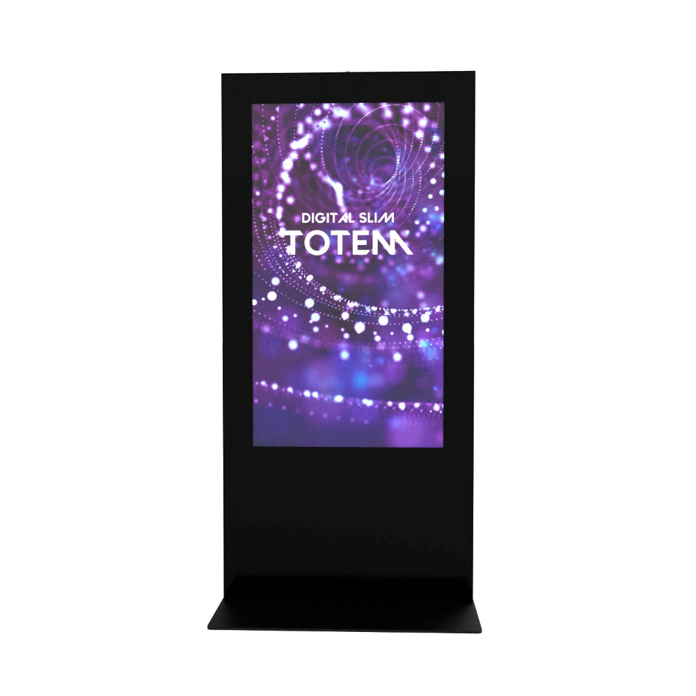 Teremtsen nagyobb figyelmet a Digital Slim Totemmel. A Digital Slim Totem rendkívül elegáns megjelenésű a 70 mm vastag testének köszönhetően. Tökéletes kiállításokon, beltéri rendezvényeken vagy az üzletében való használatra. A Digital Slim Totem rendelhető érintő fóliával is, amely érintőképernyős funkcióval látja el (további információért lépjen kapcsolatba az értékesítőjével).