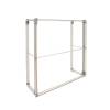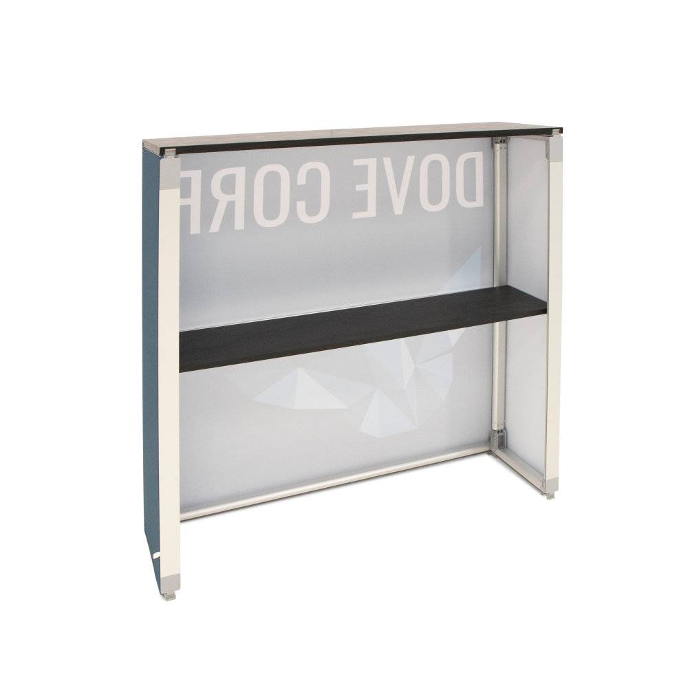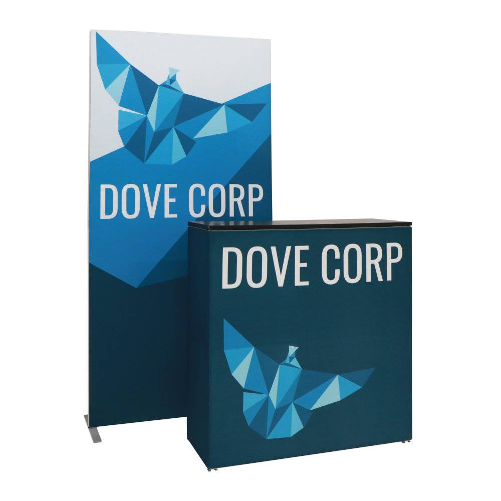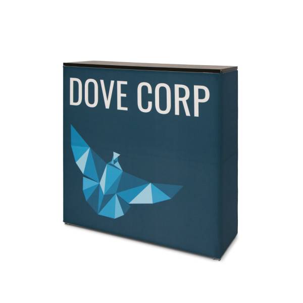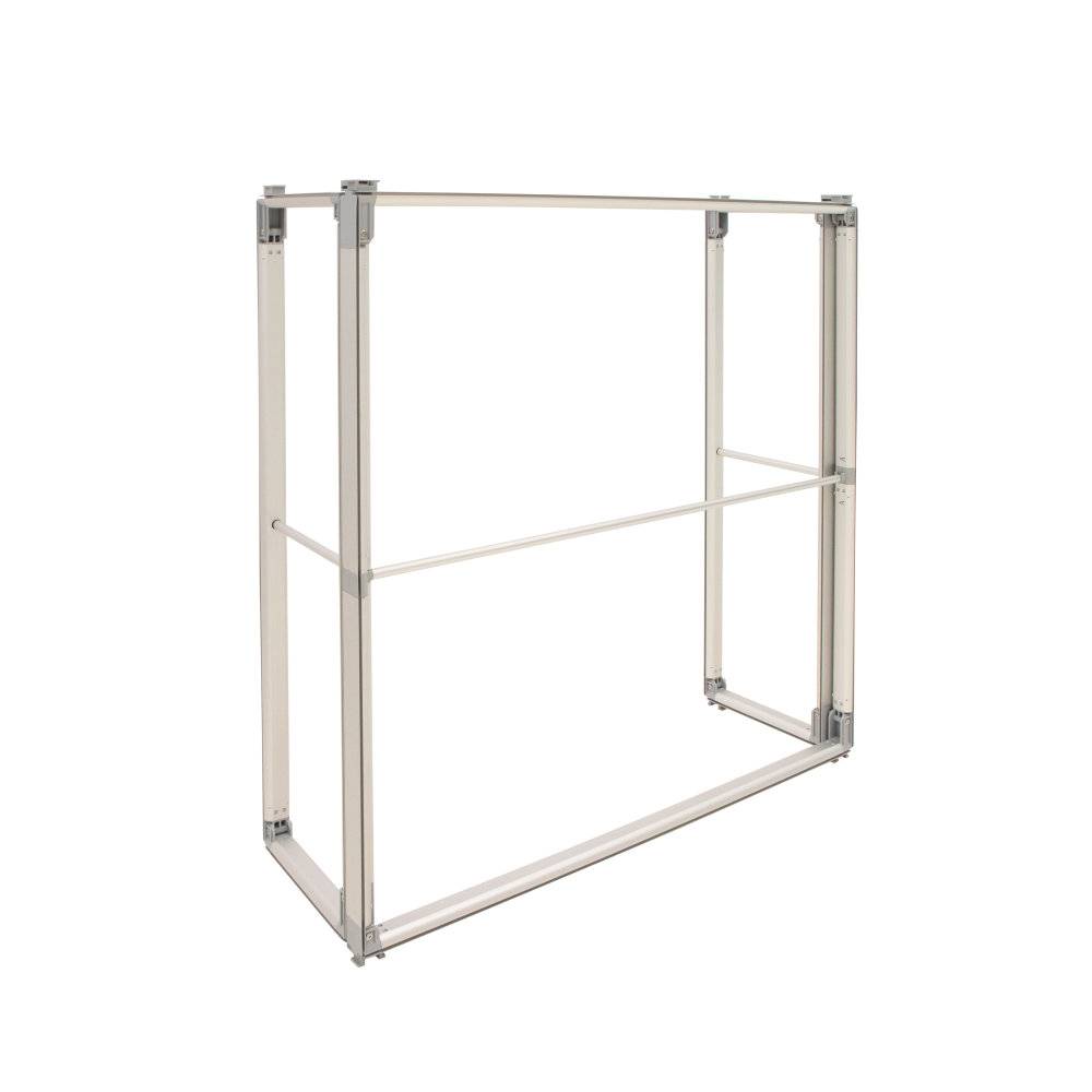 A FlexFrame promóciós pult elegáns, masszív kialítású, és néhány pillanat alatt, szerszám használata nélkül összeszerelhető. Alumínium vázzal rendelkezik ezüst vagy fekete kivitelben, fekete asztallappal, amely akár 15 kg-ot is elbír, valamint egy belső polccal, amely tárolóhelyként szolgál. Az élénk színekkel nyomtatott, minden oldalon látható grafika és a párnázott szállítótáska ideálissá teszik bármely rendezvény kiegészítő elemeként.