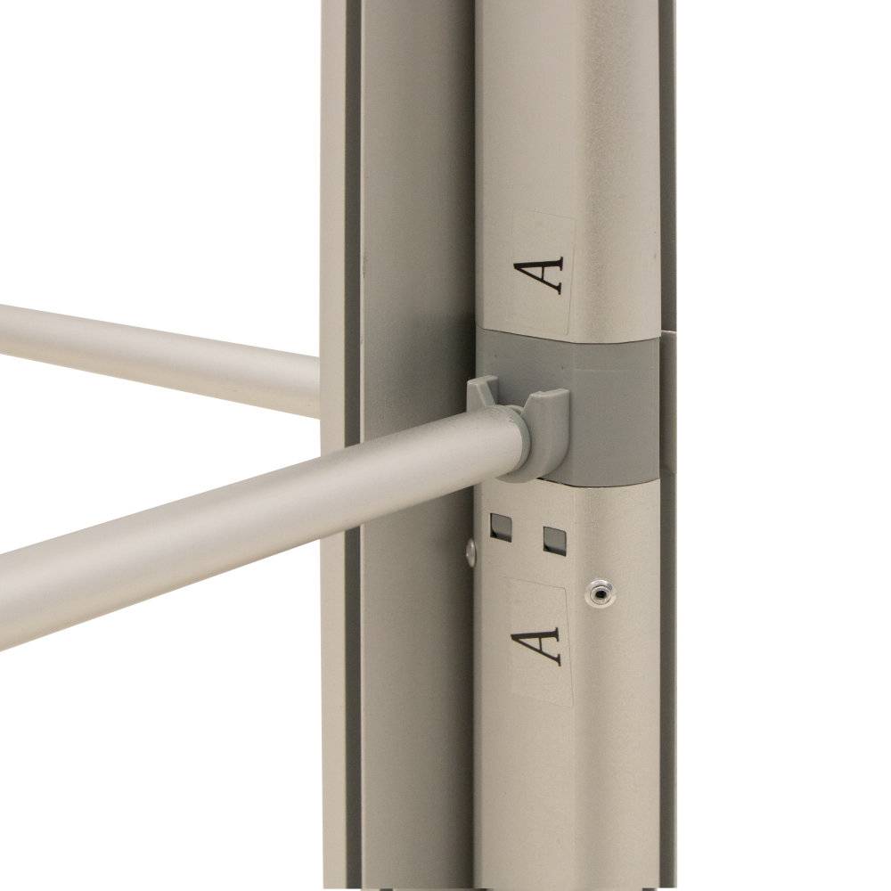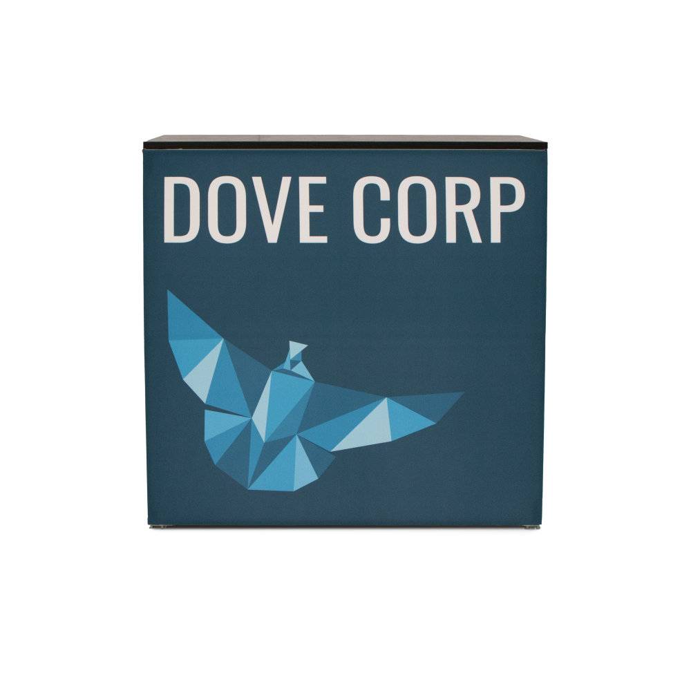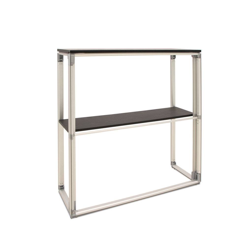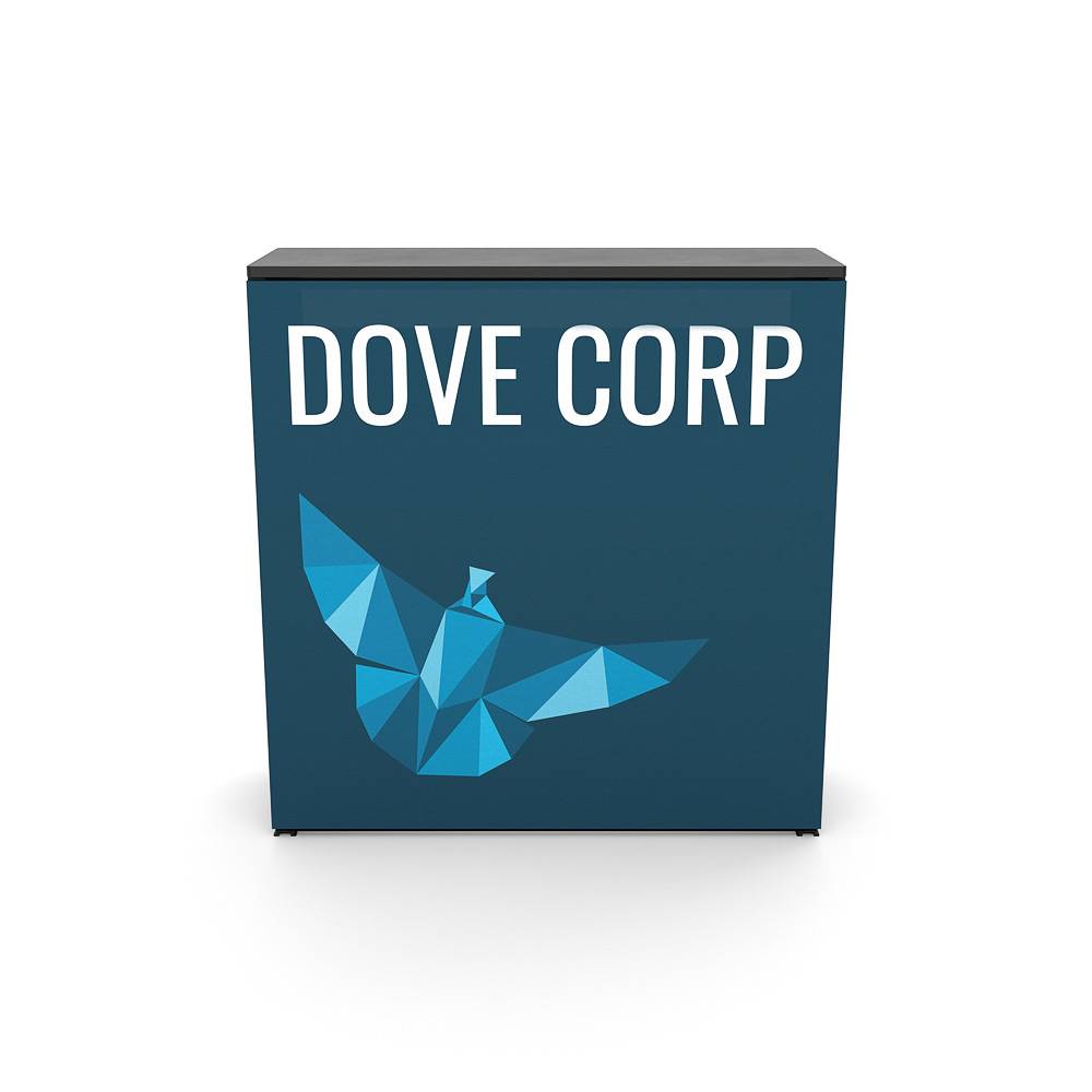 A FlexFrame promóciós pult elegáns, masszív kialítású, és néhány pillanat alatt, szerszám használata nélkül összeszerelhető. Alumínium vázzal rendelkezik ezüst vagy fekete kivitelben, fekete asztallappal, amely akár 15 kg-ot is elbír, valamint egy belső polccal, amely tárolóhelyként szolgál. Az élénk színekkel nyomtatott, minden oldalon látható grafika és a párnázott szállítótáska ideálissá teszik bármely rendezvény kiegészítő elemeként.