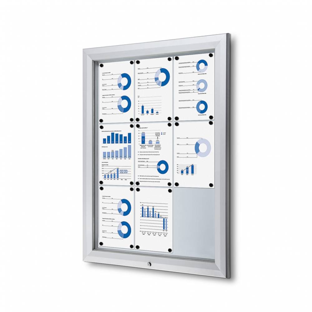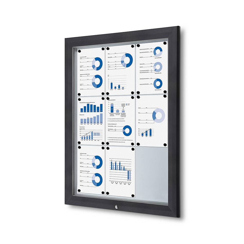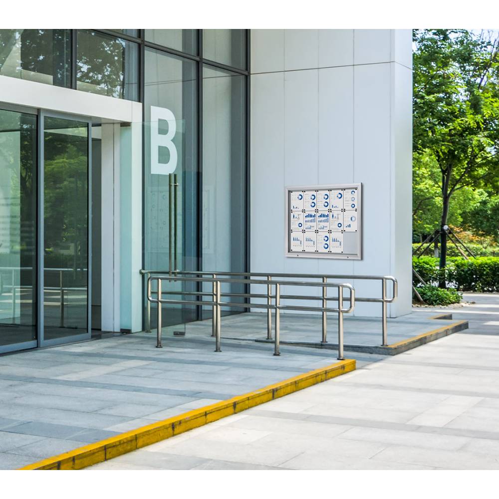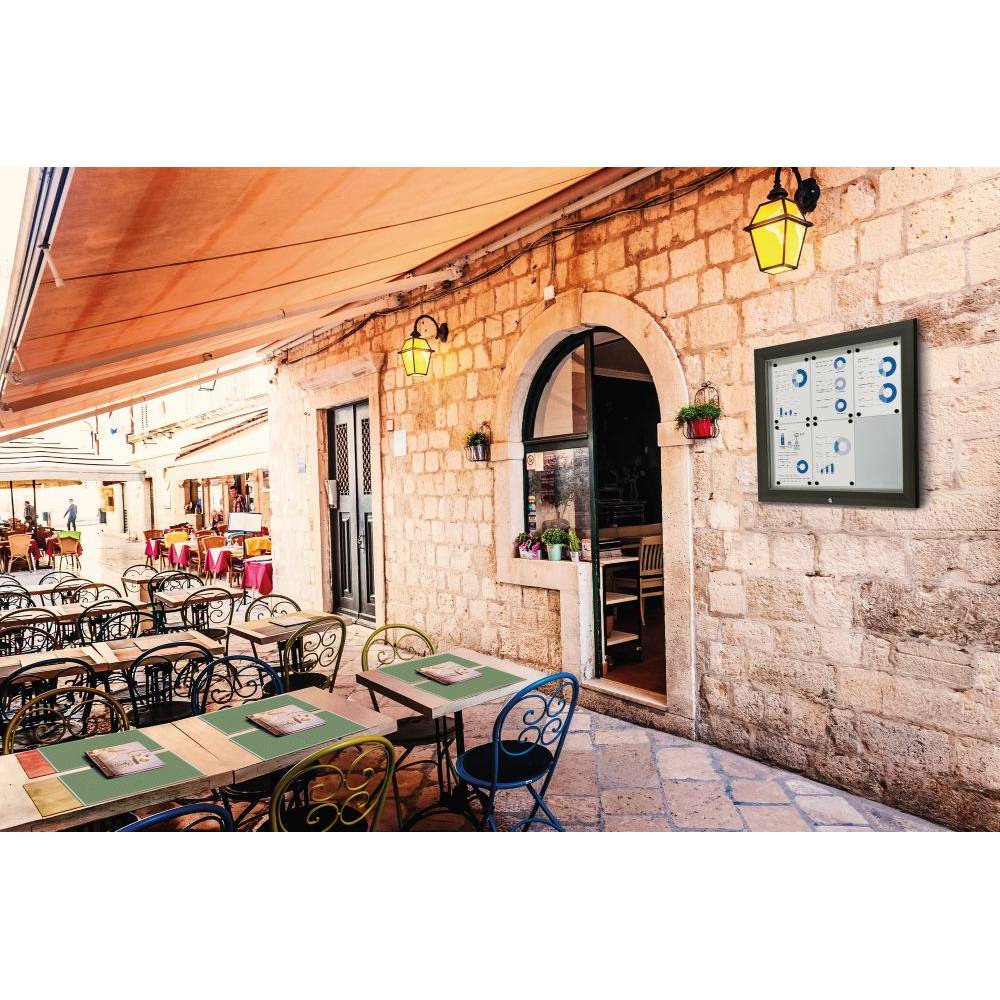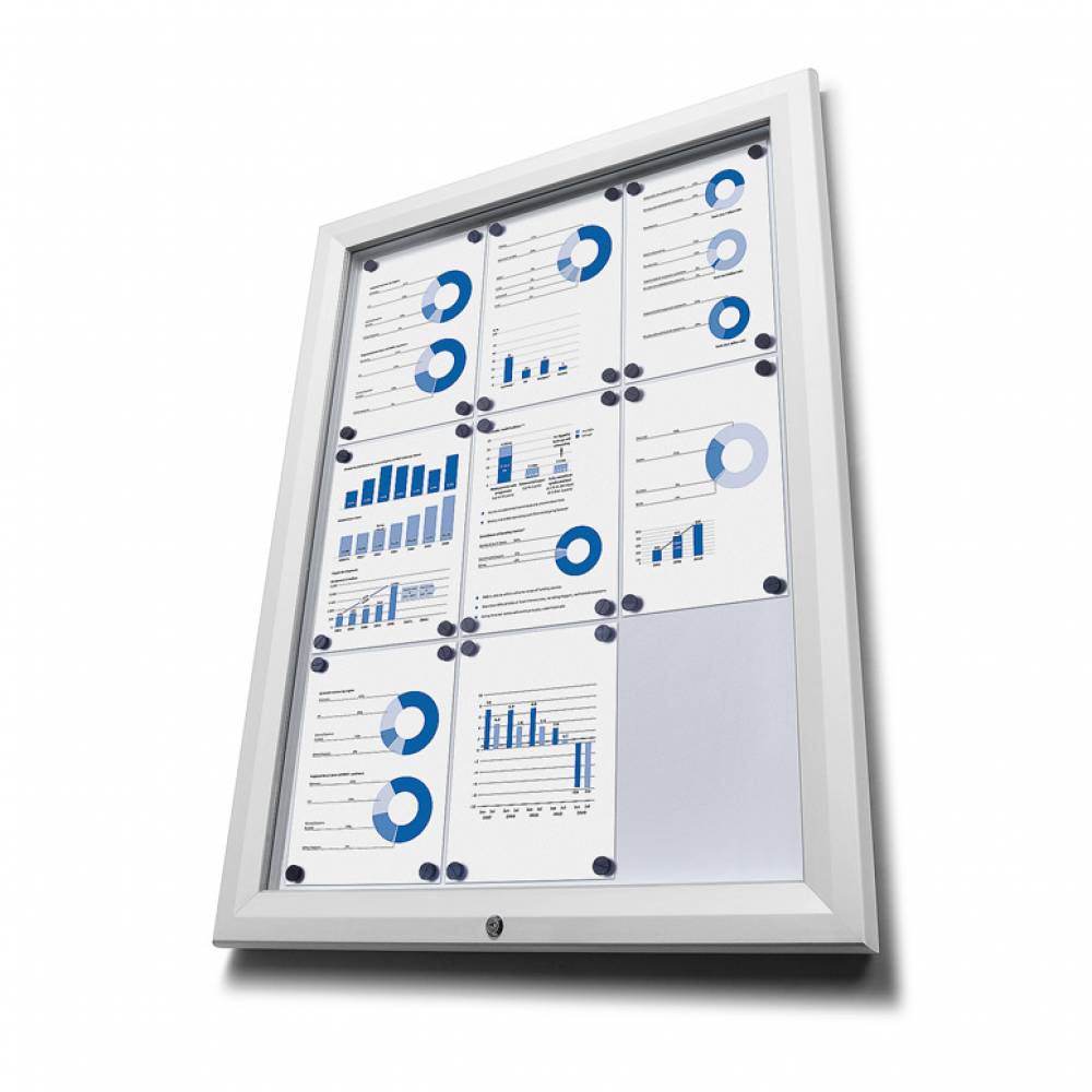 A vitrin egyik legnagyobb előnye a rugalmassága: lehetővé teszi, hogy az üzeneteit könnyedén kihelyezze a para háttámlával ellátott verzió esetén tűzéssel, vagy az acél hátlap verziónál mágnesekkel. Ezáltal különféle kommunikációs igényeket is kielégít, legyen szó információk közléséről, hirdetések elhelyezéséről vagy akár fontos üzenetek megosztásáról egy forgalmas helyszínen.
