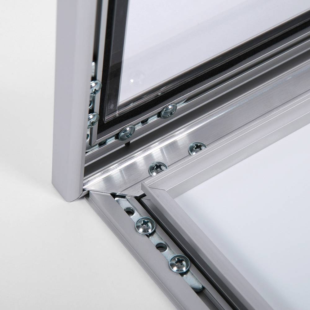 Az LEDMENU Kültéri Menütartó Vitrin tok tökéletes választás azok számára, akik szeretnék egyesíteni a funkcionalitást és az eleganciát kültéri megjelenítésükben. A 37 mm-es eloxált alumínium profil nemcsak elegáns, hanem tartós is, ami ideális választás kültéri használatra. A vitrin zsanéros, zárható alumínium ajtóval és átlátszó polikarbonát előlappal rendelkezik, így biztosítva a menü vagy hirdetési tartalom védelmét az időjárás viszontagságaitól. Az alumínium profil kifinomult megjelenést kölcsönöz a vitrinnek, amely stílusosan emeli ki a bemutatott tartalmat.