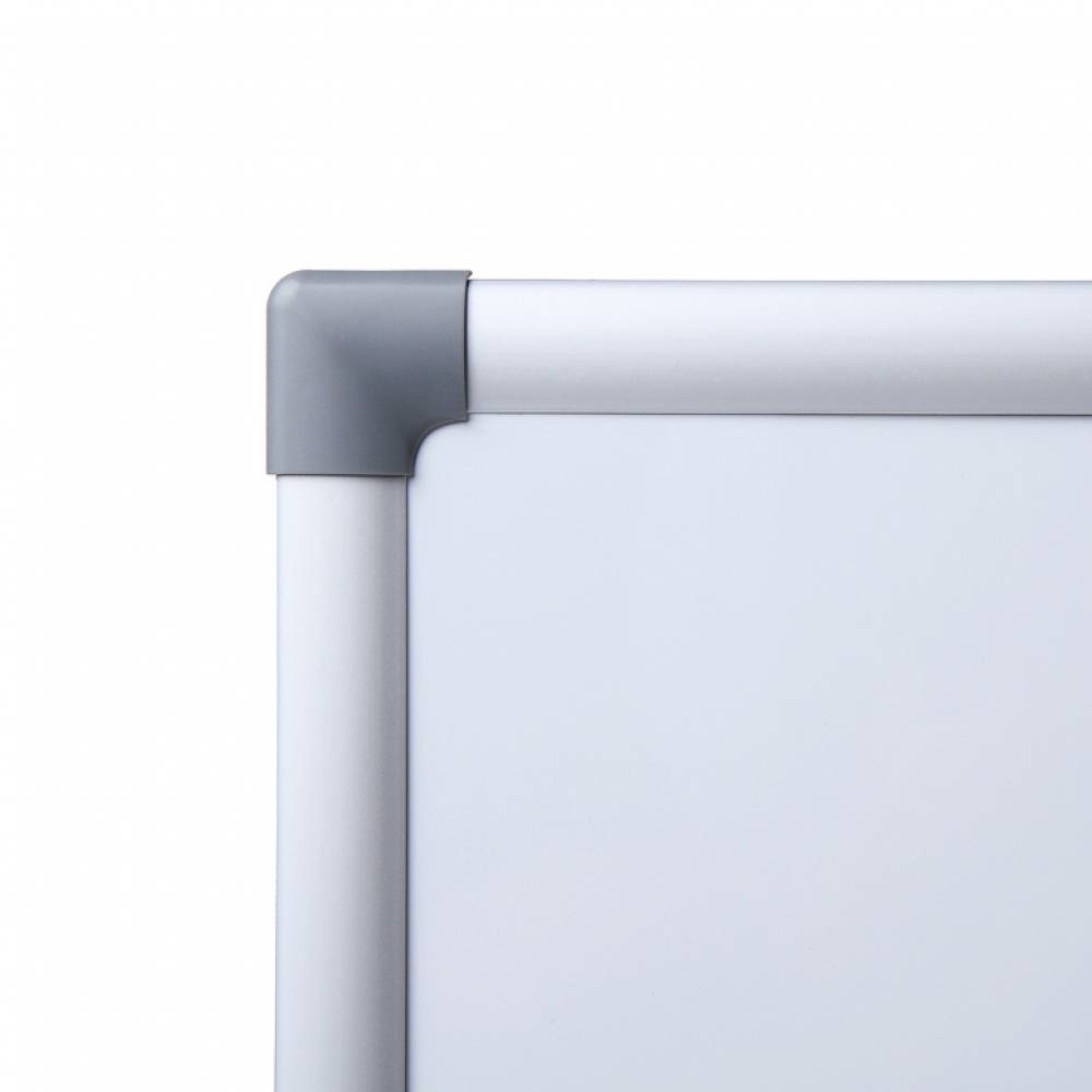 SCRITTO® Economy írótáblánk felületére írt szövegeket, rajzokat könnyedén le lehet mosni acélfelületének köszönhetően. Így amire már nincs szüksége, azt egyszerűen, nyomok nélkül el tudja távolítani. Fehér táblánkra bármilyen színű marker tollal írhat. Sokoldalú, akár fekvő vagy álló pozícióban is felrögzítheti. A termék fröccsöntött biztonsági sarkakkal van ellátva, ezzel biztosítva a biztonságos felhelyezést.