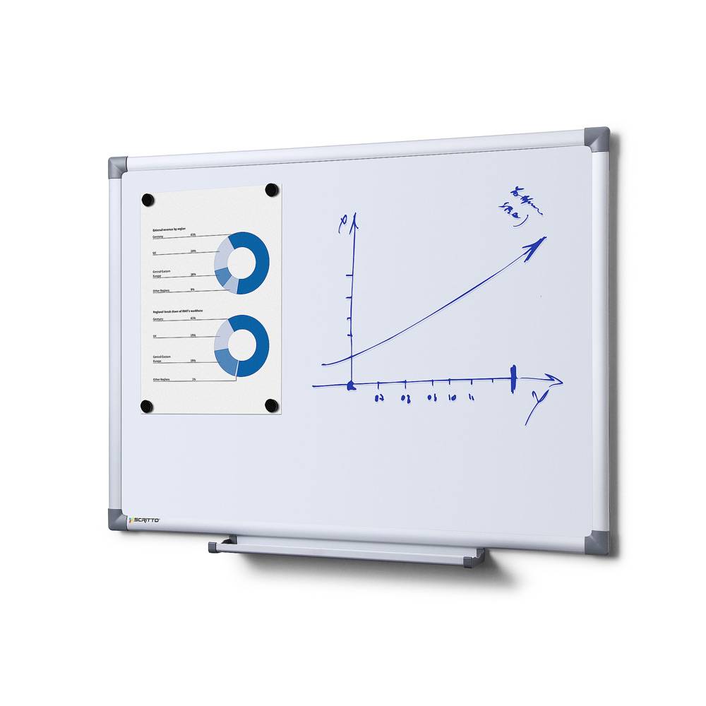 Mágneses whiteboard táblánk lehetővé teszi, hogy bonyolultabb ábrákat, diagramokat a mágnesek segítségével kifüggeszthessünk. Így könnyedén bemutathatunk összehasonlításokat, pénzügyi terveket. Nem utolsó sorban írótáblánk további előnye, hogy környezetbarát, hiszen az íráshoz filcet használunk, így használat közben nem keletkezik por. Emiatt egyre több helyen, különösen az iskolákban cserélik le a hagyományos krétatáblákat whiteboard táblákra.