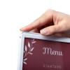 A LED világító menütartóval DIN A5 méretben érhető el, kompakt és elegáns kialakítással, mindössze 12,5 mm vastag kerettel. Sokoldalú reklámeszköz bármilyen környezetbe, de különösen ideális asztali promóciókra – legyen szó bárpultokról, hotelekről, üzletek pultjairól, rendezvényekről vagy kiállításokról.