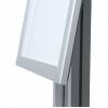 Világosítsa meg tartalmát vagy hirdetését a LED-del felszerelt szabadon álló menüoszlop logóval. A beépített LED-es fénycsík megvilágítja a tartalmat, különös tekintettel a kijelzőre. Felhívjuk figyelmét, hogy csak a logó alatti tartalom világít, a felső kártya nem. Ezenkívül ügyeljen arra, hogy az elektromos csatlakoztatást zárt térben kell elvégezni – nem érheti eső.
