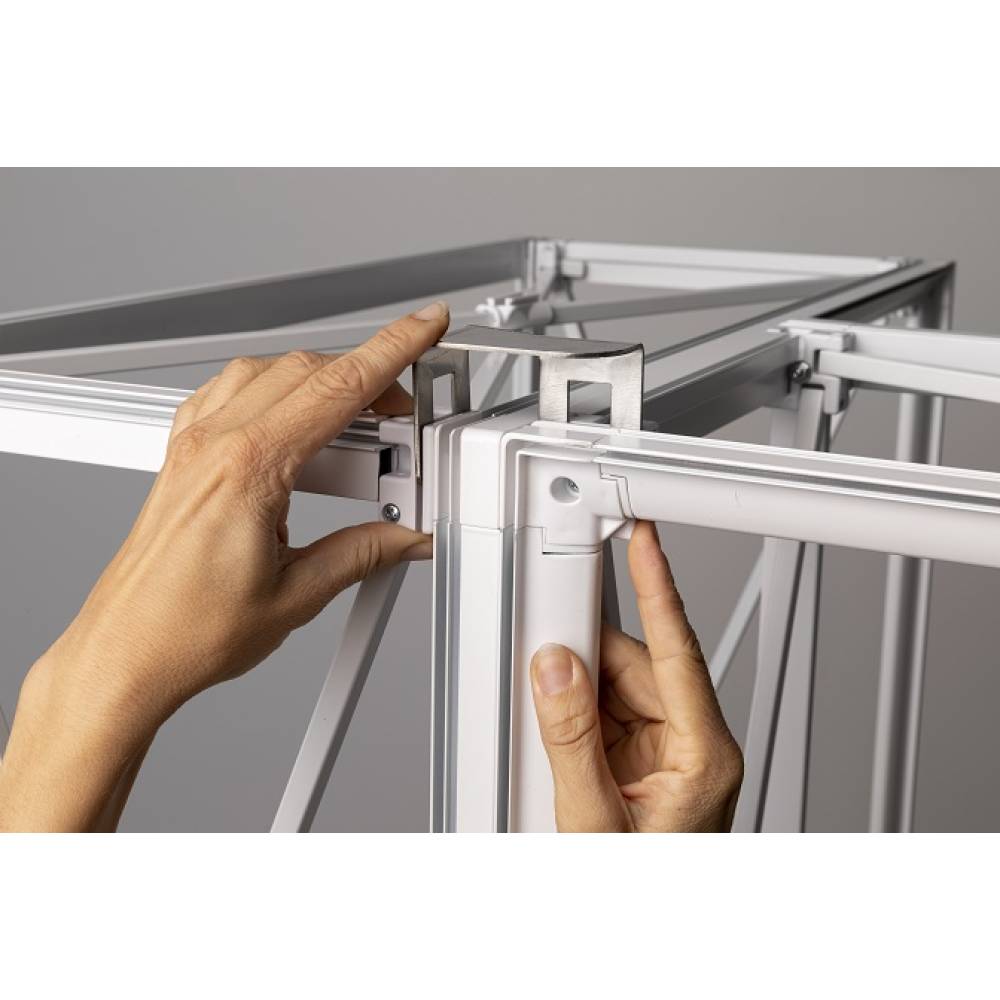 Make the most out of our impressive and elegant Pop-up systems and link two Impress walls together in a 90-degree angle. Create your own stand as you would like it to be. A set of two aluminium connectors, suitable for Pop-up Impress Straight. Easy and simple to install. Connect to Impress!