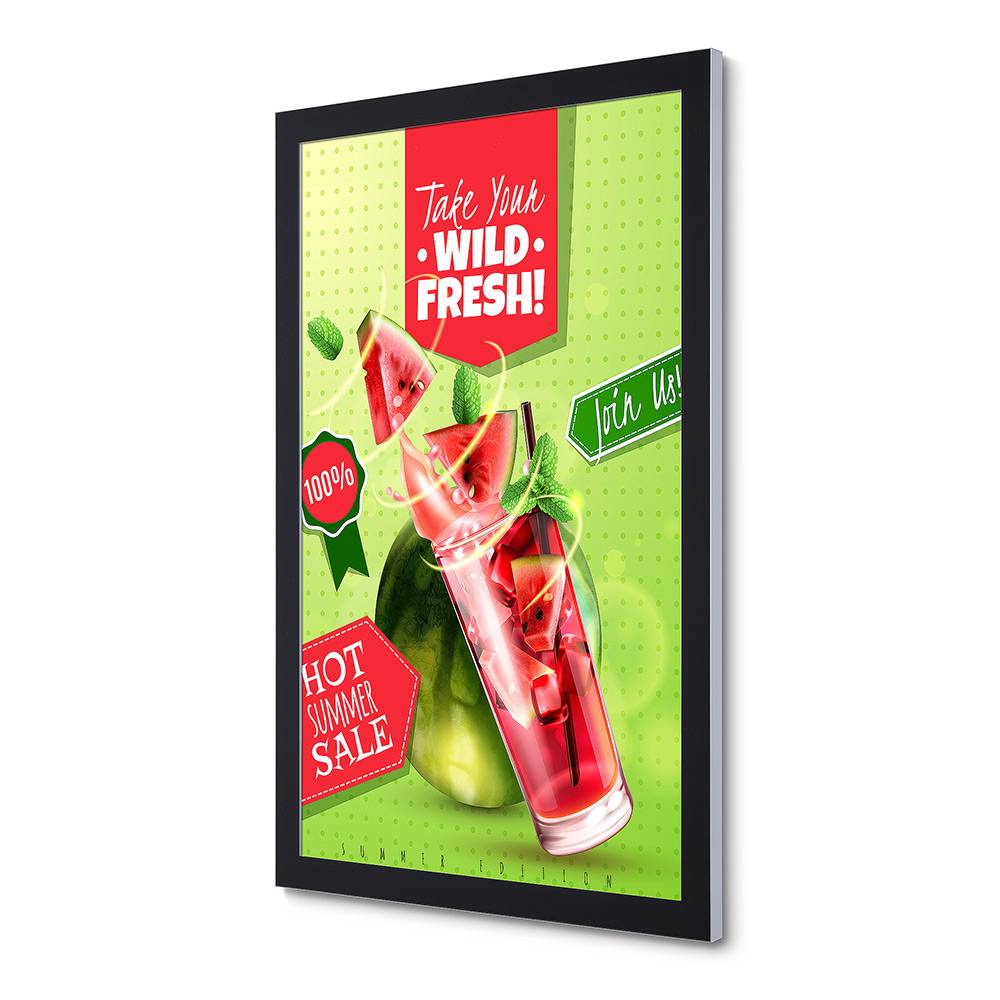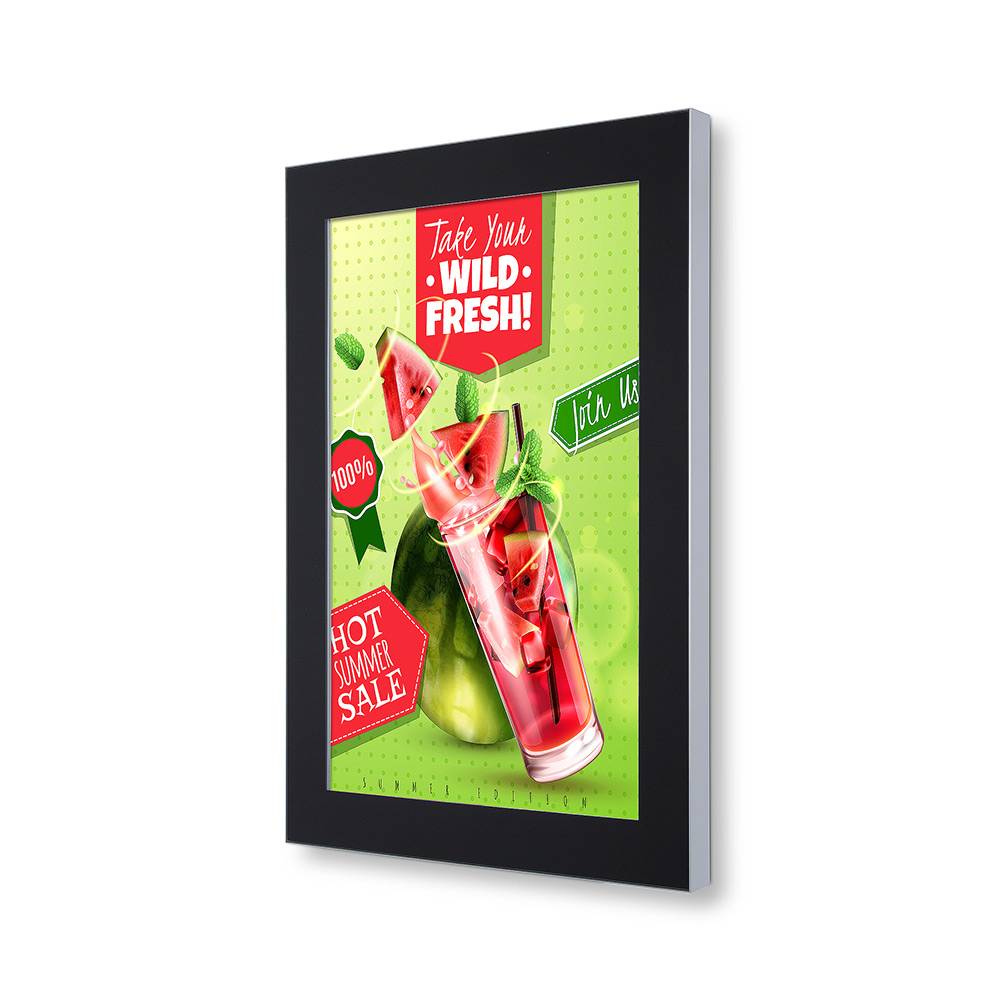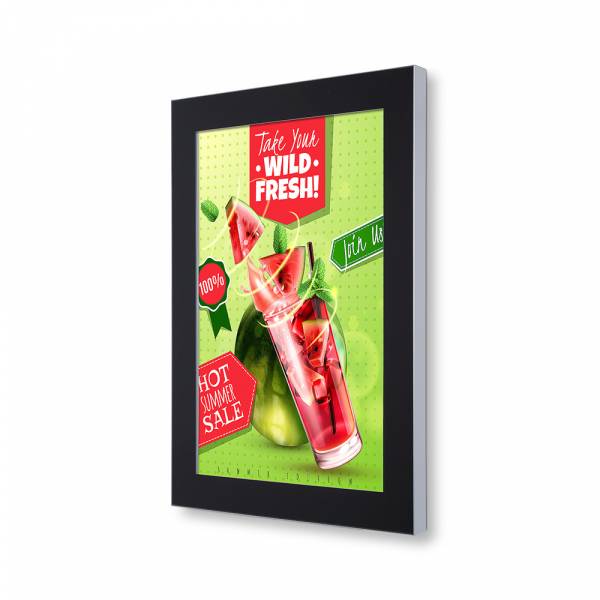 A PRÉMIUM Kültéri Plakátkeret tökéletes választás, ha extra lendületet szeretne adni hirdetésének. Ez a prémium minőségű, megvilágított és zárható plakátkeret nemcsak elegáns megjelenést biztosít, hanem IP56 minősítésének köszönhetően vízálló is, így bármilyen időjárási körülmény között használható kültéren. A hirdetése 24/7 kiváló láthatóságot élvez, és az ESG biztonsági üveg rendkívüli robusztusságot nyújt. Az egyszerű posztercsere lehetővé teszi, hogy gyorsan és könnyedén frissítse tartalmát, különösen nagy formátumú poszterek esetén.
