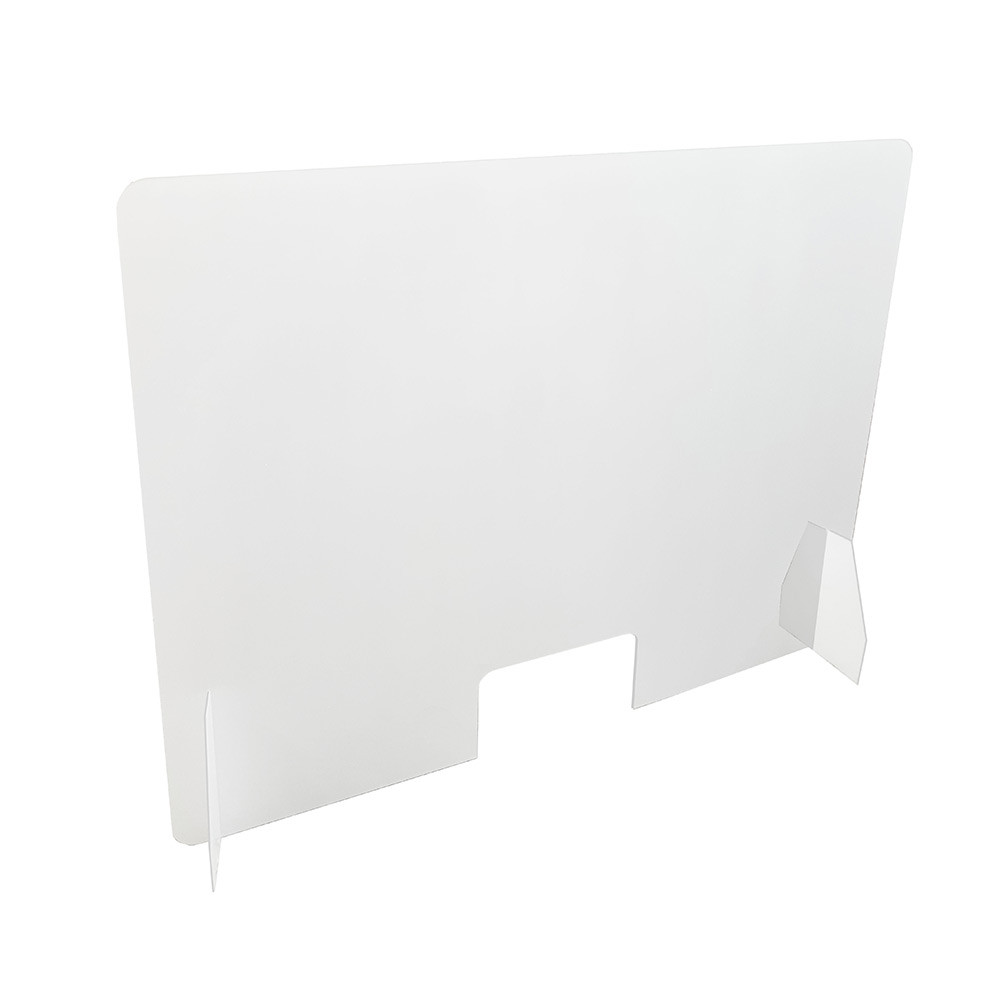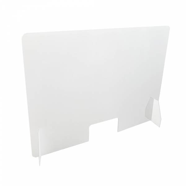 Reduce the amount of physical contact between employees and customers with the Protective Acrylglass Wall. A freestanding transparent acrylglass wall of 3 mm thickness with plastic feet. Fully covered with acrylglass, ideal to use on counters or on tables. A perfect protection wall to use at check-out areas, information points or at offices. Available in two sizes, also in large format of 100 x 75 cm.