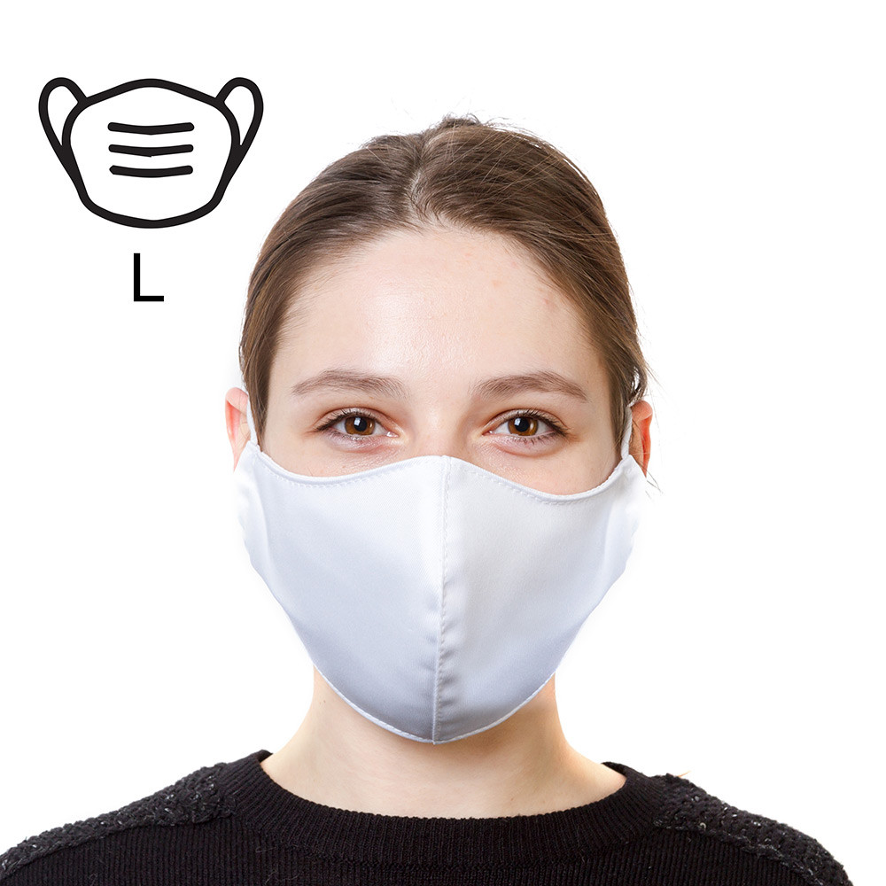 Protect yourself and others with the soft knit white mask. A 100% polyester cover layer and a second layer of 100% cotton. Available in sizes for adults and children.