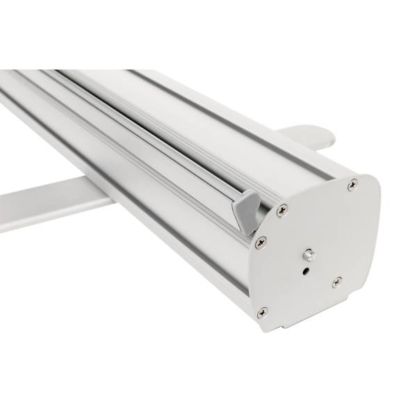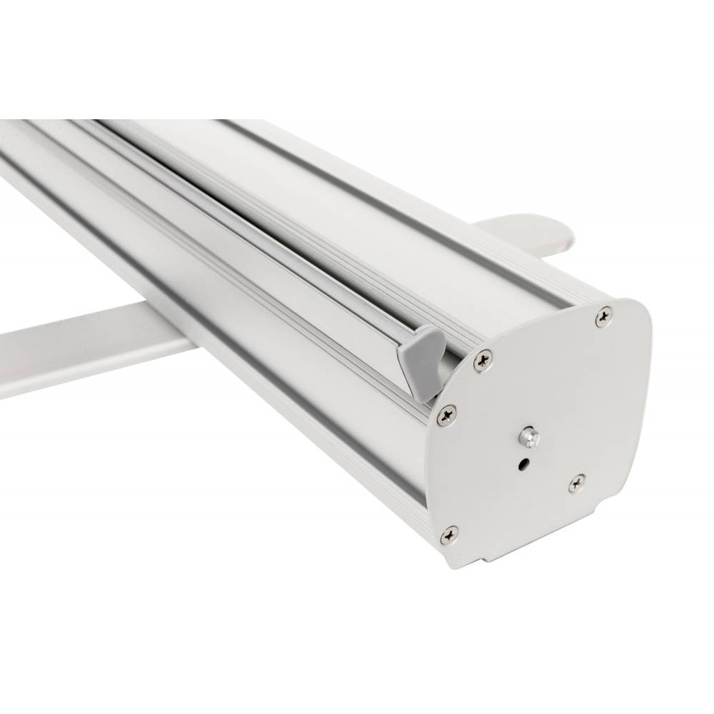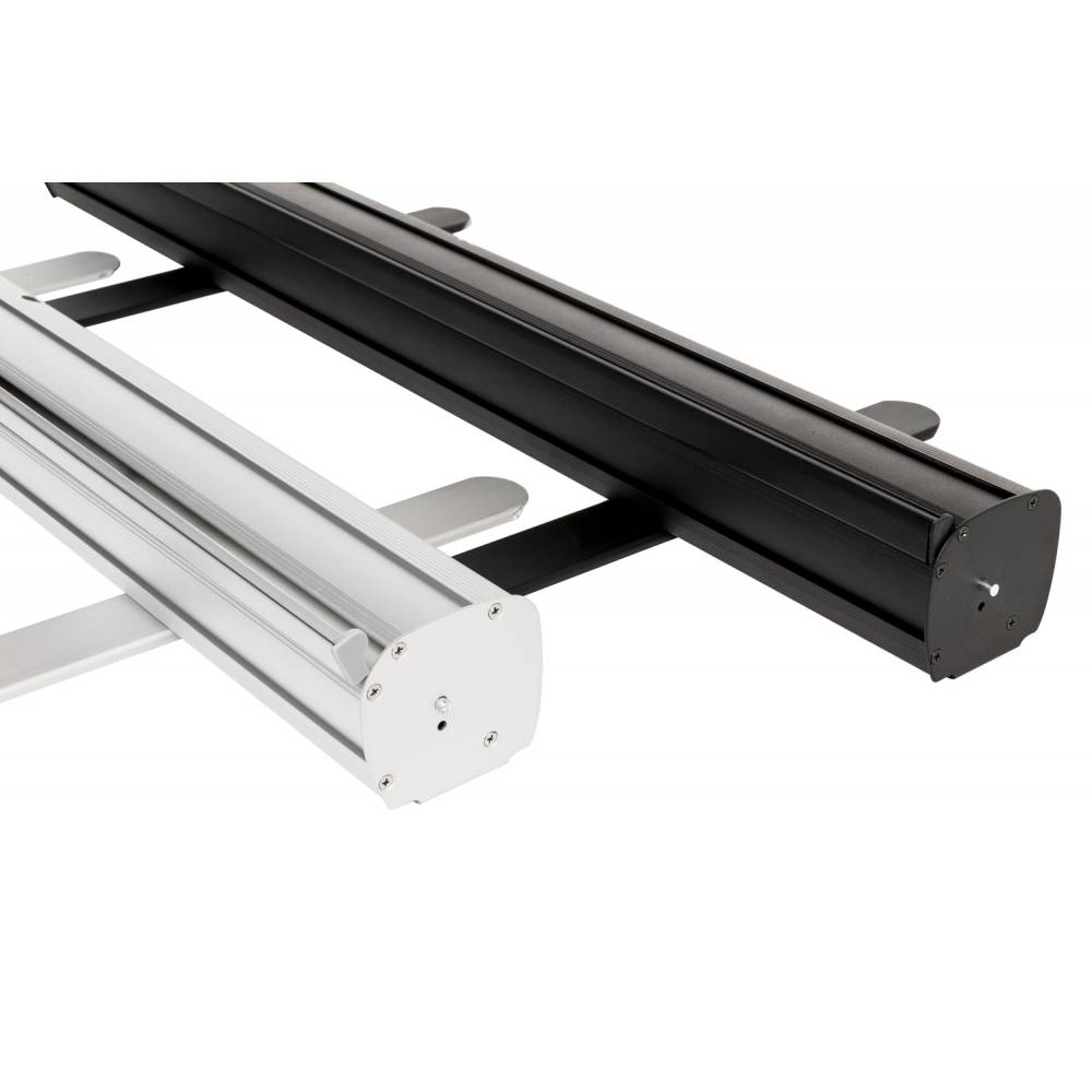 A BASIC RollUp különlegessége az állítható magasság, amely lehetővé teszi a banner 200 cm-es hosszúságának növelését akár 220 cm-ig. Ezzel a funkcióval még látványosabb megjelenítést érhet el, ráadásul a hosszabbító rúd fekete és ezüst színben is kapható, hogy tökéletesen illeszkedjen a választott kazetta színéhez.