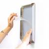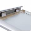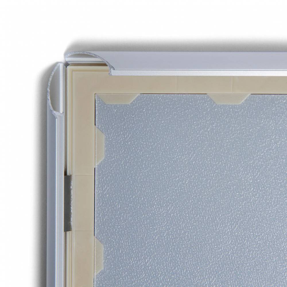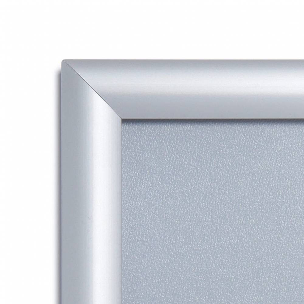 Ezüstre eloxált 25 mm széles profil, UV-álló, tükröződésmentes védőfólia és az alsó kemény műanyag hátlap teszi professzionálissá ezt a keretet. Használja álló vagy fekvő helyzetben, tökéletes keret minden A4-es méretű plakáthoz!