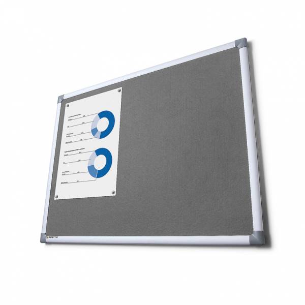 A SCRITTO Tűzhető Textiltábla egy praktikus és sokoldalú megoldás minden olyan helyre, ahol fontos az információk rögzítése és megosztása. A tábla különböző színekben (kék, zöld, szürke, piros) elérhető, így könnyedén illeszthető bármilyen környezethez vagy dekorációhoz. Tartós kialakításának köszönhetően hosszú távú használatra tervezték, az ezüst eloxált alumínium keret pedig nemcsak stílusos, hanem a biztonsági sarkak révén extra védelmet is nyújt.