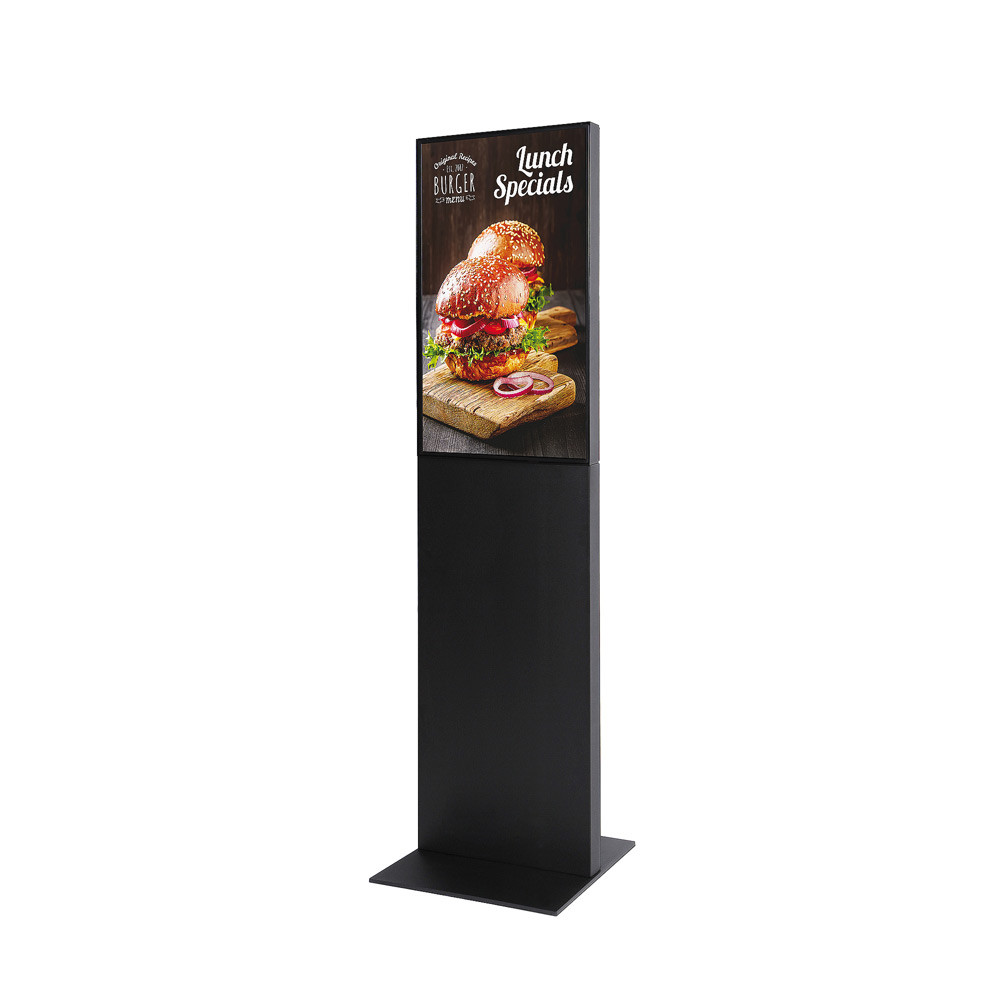 A Smart Line Digitális Totem a Digital Signage sorozat újdonsága. Elegáns megjelenésű display keret nélküli kivitelben. A digitális totem 32" vagy 43" méretű Samsung professzionális képernyővel rendelkezik. A 8 mm vastag fém alaprész nagy stabilitást biztosít, és rögzítőcsavarokkal rögzíthető a padlóra. Normál esetben fekete vagy fehér színben, egyéb RAL színekben vagy egyedi márkázással kérhető. A digitális totem rendelkezik USB interfésszel a tartalom egyszerű lejátszásához és a függőleges képernyő tájolásához. A 32-es verziót fém katalógus- és szórólaptartó résszel szállítjuk.