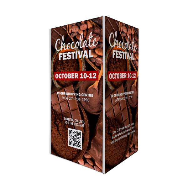 Ez a kizárólag beltéri használatra tervezett toronyszerű állvány bármilyen közösségi térben vagy vendéglátóhelyen garantáltan feltűnést kelt. A textilfeszítős keretekből álló torony a magasság és a stabil szélesség lenyűgöző kombinációját kínálja, így megbízható, könnyű, mégis stabil megoldás bármilyen környezetbe. Egy olyan társ, amely soha nem hagy cserben.