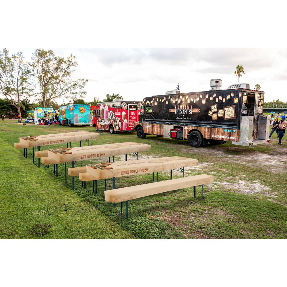 - Set of fabric table cover and two bench covers for standard beer tables