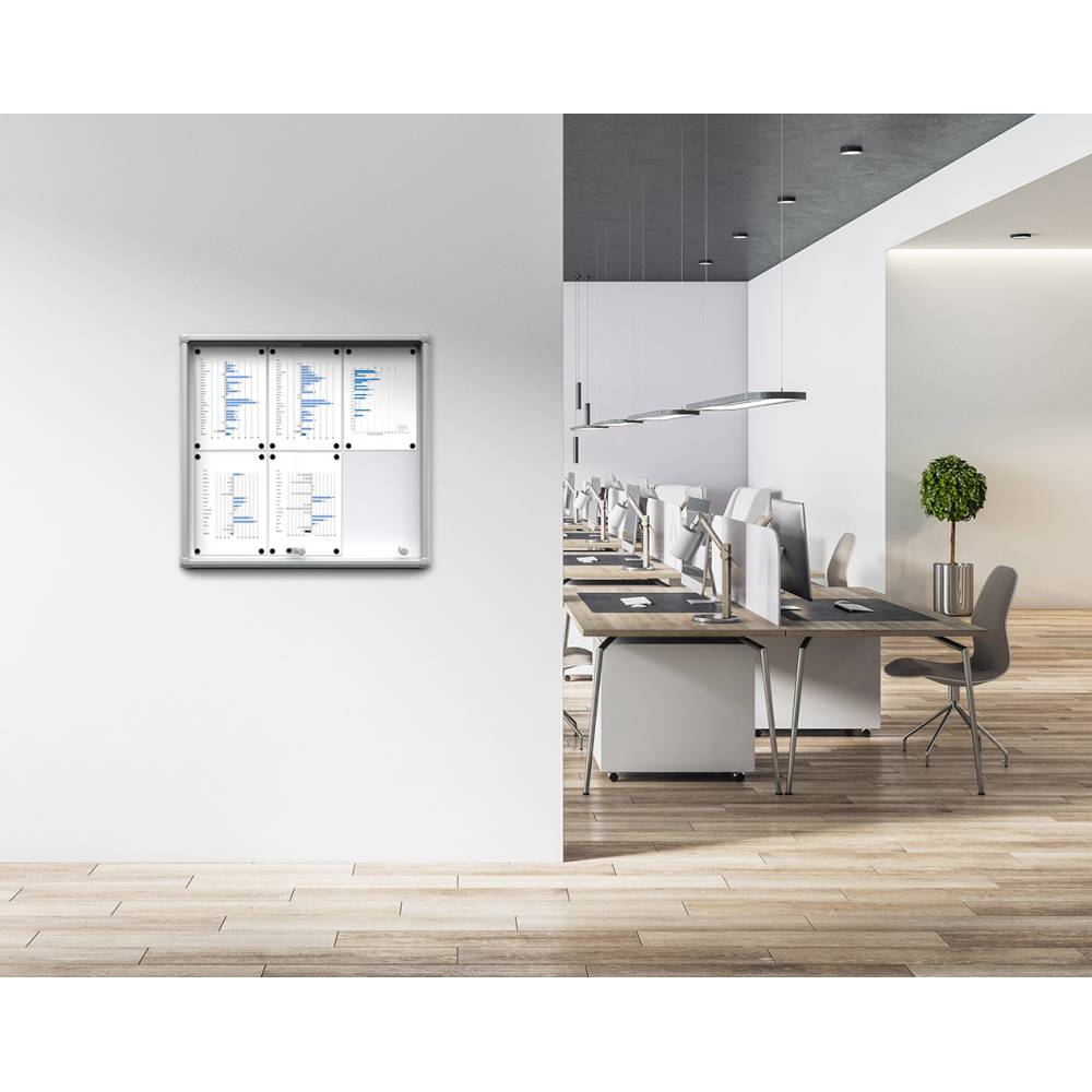 A vitrin egyik legnagyobb előnye a rugalmassága: lehetővé teszi, hogy az üzeneteit könnyedén kihelyezze a para háttámlával ellátott verzió esetén tűzéssel, vagy az acél hátlap verziónál mágnesekkel. Ezáltal különféle kommunikációs igényeket is kielégít, legyen szó információk közléséről, hirdetések elhelyezéséről vagy akár fontos üzenetek megosztásáról egy forgalmas helyszínen.
