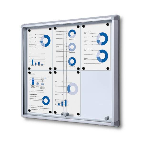 A vitrin egyik legnagyobb előnye a rugalmassága: lehetővé teszi, hogy az üzeneteit könnyedén kihelyezze a para háttámlával ellátott verzió esetén tűzéssel, vagy az acél hátlap verziónál mágnesekkel. Ezáltal különféle kommunikációs igényeket is kielégít, legyen szó információk közléséről, hirdetések elhelyezéséről vagy akár fontos üzenetek megosztásáról egy forgalmas helyszínen.