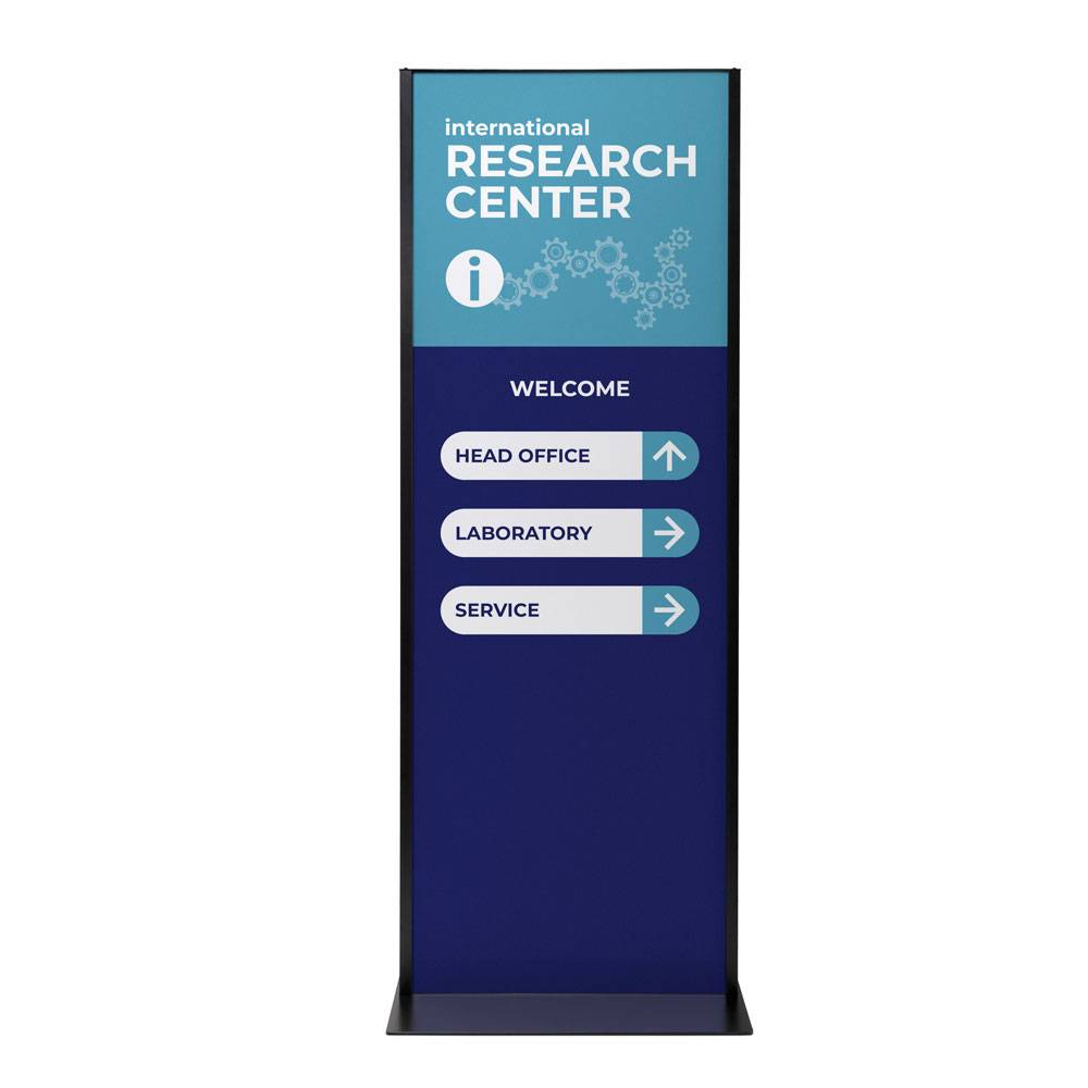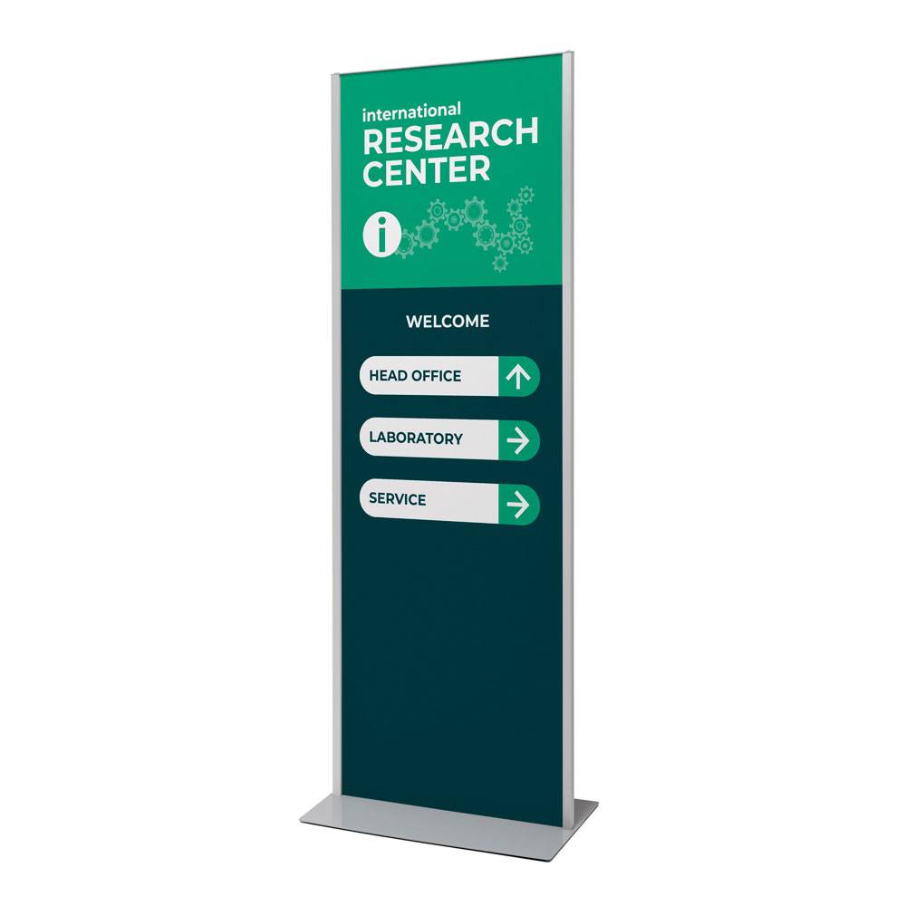 A 25 mm vastag, diszkrét alumínium keret visszafogott, mégis modern megjelenést kölcsönöz a totemnek.