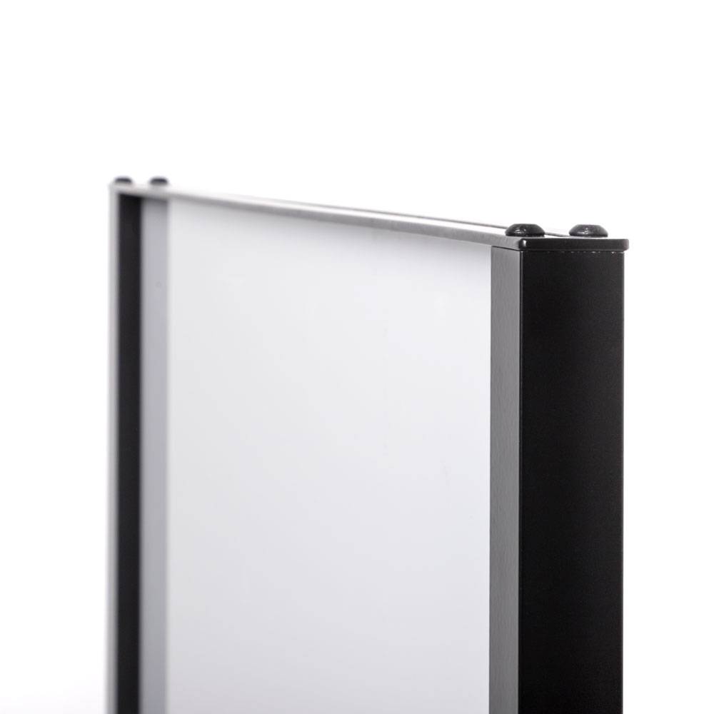 A panel cseréje gyors és problémamentes: a felső nyíláson keresztül könnyedén eltávolítható a régi tartalom, és máris behelyezhető az új. A 3 mm vastag, habosított PVC-ből (FOREX®) készült panelek tökéletesen alkalmasak nyomtatásra – garantáltan élénk, ragyogó színekkel jelenik meg minden vizuális elem.