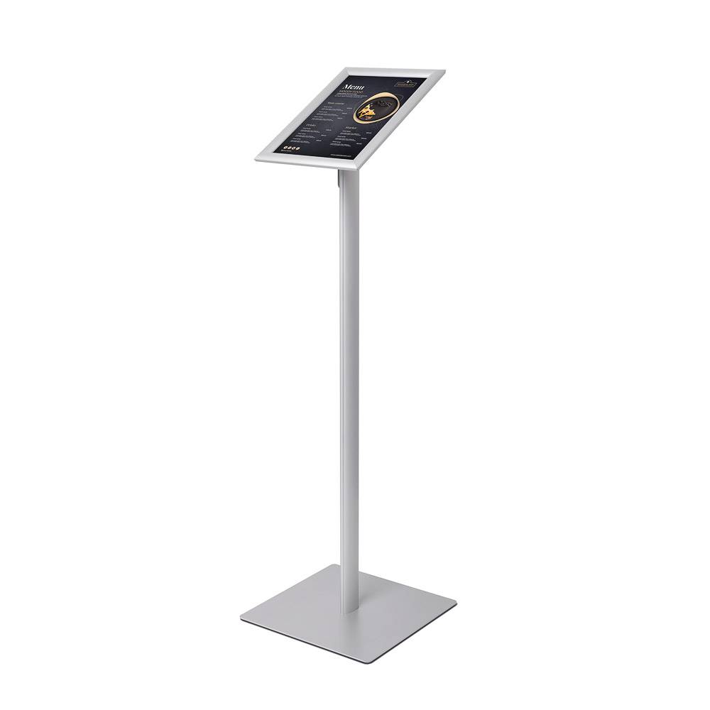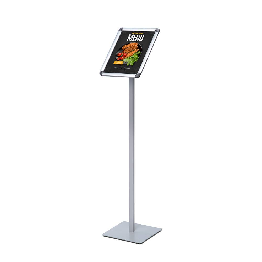 A SNAPSTAND Várakoztató Tábla tökéletes választás, ha esztétikus és stabil megoldást keres a nyomtatott anyagok bemutatására. Ez a menütábla szögletes pattintható kerettel rendelkezik, amelyet alumínium láb támaszt, biztosítva a tartósságot és a hosszú élettartamot. A tábla kétféle alappal választható: MFC vagy acéllemez, mindkettő stabilitást nyújt, így biztos lehet benne, hogy a SNAPSTAND biztonságosan áll majd a helyén, akár étteremben, akár múzeumban vagy értékesítési ponton használja.