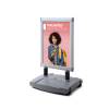 Érdemes a WINDTALKER® EXCEL Megállítótáblát választani, ha kültéri reklámozásra van szükség, mert kiváló stabilitást nyújt a vízzel vagy homokkal tölthető műanyag talpnak és a megerősített, magas minőségű acélrugóknak köszönhetően. A strapabíró középső panel ellenáll a rúgásoknak, ami növeli a termék élettartamát. A kétoldalas kialakítás lehetővé teszi, hogy hirdetése több irányból is jól látható legyen. Továbbá, a különböző méretekben és színekben (fekete vagy ezüst) elérhető változatok révén a termék könnyen testreszabható. Az opcionálisan hozzáadható szórólaptartó vagy topcard még inkább optimalizálja a hirdetési lehetőségeket, így biztosítva, hogy üzenete a lehető legnagyobb hatást érje el. A logó branding topcard kiegészítő lehetőség különösen hasznos, mivel egyszerűen felszerelhető, és mindkét oldalon jól láthatóvá teszi a márkáját, így növelve a láthatóságot bármilyen irányból.