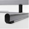 Érdemes a WINDTALKER® STEEL Megállítótáblát választani, ha kültéri reklámozásra van szükség, mert kiváló stabilitást nyújt a vízzel vagy homokkal tölthető műanyag talpnak és a megerősített, magas minőségű acélrugóknak köszönhetően. A strapabíró középső panel ellenáll a rúgásoknak, ami növeli a termék élettartamát. A kétoldalas kialakítás lehetővé teszi, hogy hirdetése több irányból is jól látható legyen. Továbbá, a különböző méretekben és színekben (fekete vagy ezüst) elérhető változatok révén a termék könnyen testreszabható. Az opcionálisan hozzáadható szórólaptartó vagy topcard még inkább optimalizálja a hirdetési lehetőségeket, így biztosítva, hogy üzenete a lehető legnagyobb hatást érje el. A logó branding topcard kiegészítő lehetőség különösen hasznos, mivel egyszerűen felszerelhető, és mindkét oldalon jól láthatóvá teszi a márkáját, így növelve a láthatóságot bármilyen irányból.