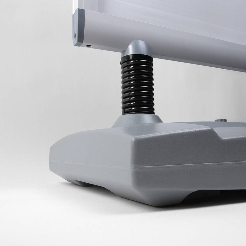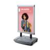 Érdemes a WINDTALKER® EXCEL Megállítótáblát választani, ha kültéri reklámozásra van szükség, mert kiváló stabilitást nyújt a vízzel vagy homokkal tölthető műanyag talpnak és a megerősített, magas minőségű acélrugóknak köszönhetően. A strapabíró középső panel ellenáll a rúgásoknak, ami növeli a termék élettartamát. A kétoldalas kialakítás lehetővé teszi, hogy hirdetése több irányból is jól látható legyen. Továbbá, a különböző méretekben és színekben (fekete vagy ezüst) elérhető változatok révén a termék könnyen testreszabható. Az opcionálisan hozzáadható szórólaptartó vagy topcard még inkább optimalizálja a hirdetési lehetőségeket, így biztosítva, hogy üzenete a lehető legnagyobb hatást érje el. A logó branding topcard kiegészítő lehetőség különösen hasznos, mivel egyszerűen felszerelhető, és mindkét oldalon jól láthatóvá teszi a márkáját, így növelve a láthatóságot bármilyen irányból.