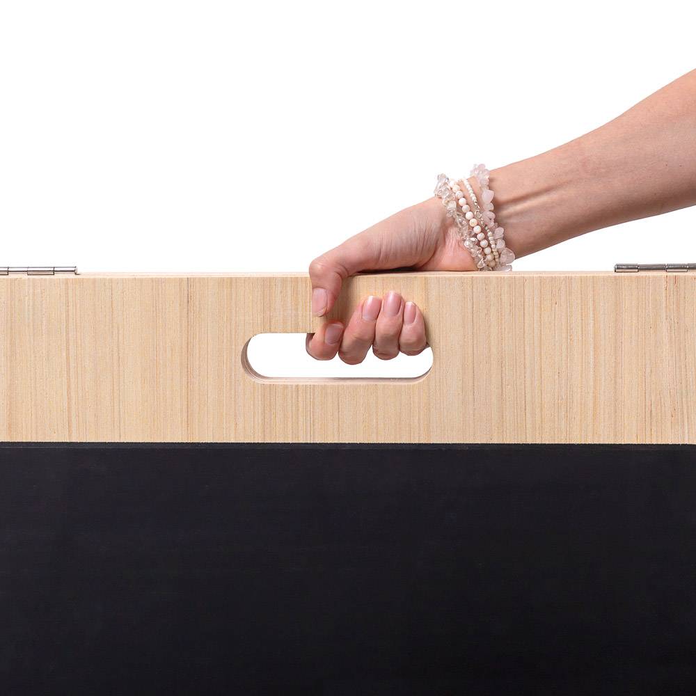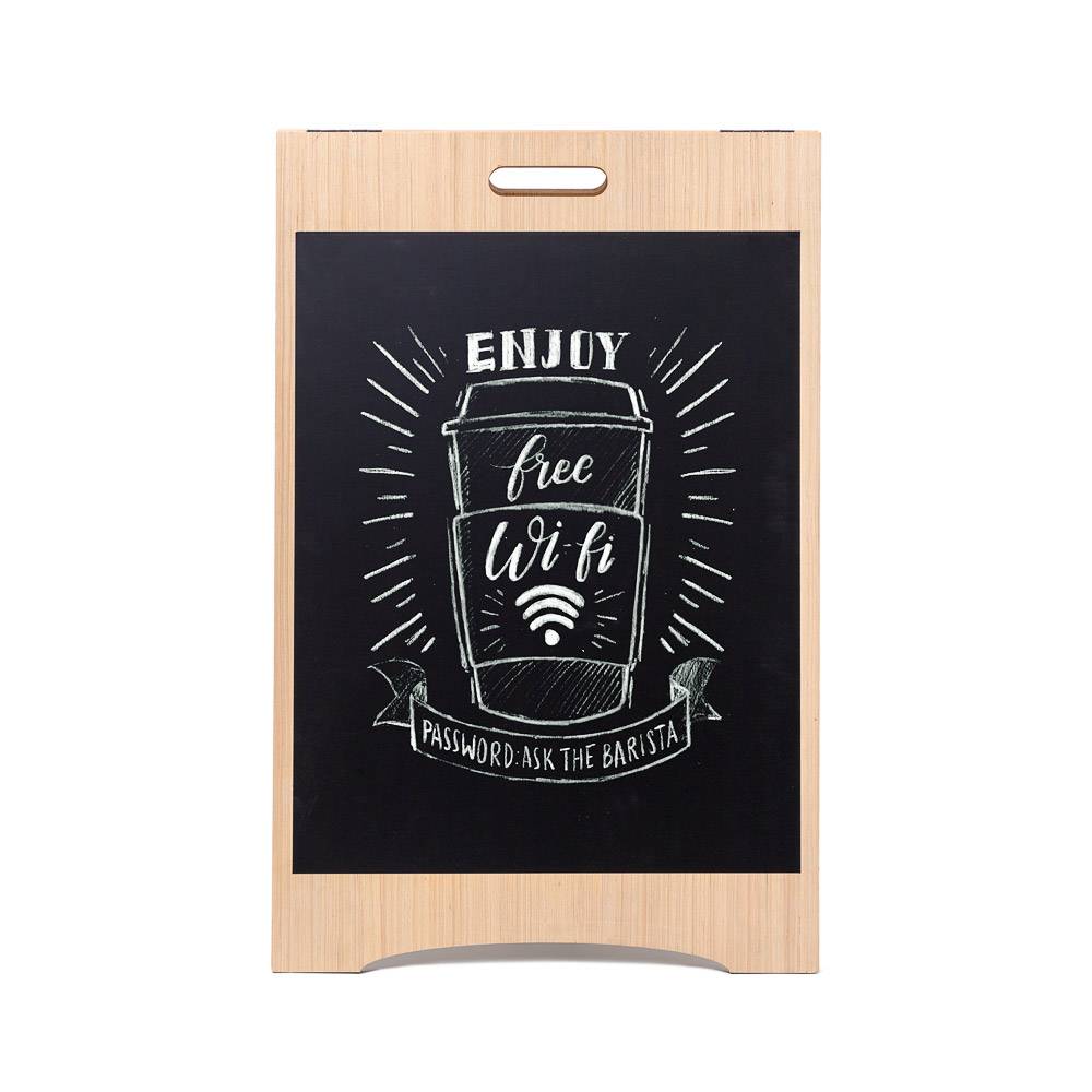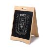 A WOODY Fa Krétás Megállítótábla kiváló választás, ha olyan megoldást keres, amely könnyen hordozható és praktikus. Ez a megállítótábla úgy lett tervezve, hogy egyszerűen össze lehessen hajtani és könnyedén áthelyezni a kívánt helyre. Mindössze 4,8 kg-os súlyával lenyűgözően könnyű, mégis rendkívül stabil, így bármilyen helyszínen megbízhatóan megáll. Az egyszerű fogantyú segítségével gyorsan és könnyedén áthelyezheti a táblát, legyen az az üzlete vagy étterme bejárata előtt, vagy bármely más helyszínen.