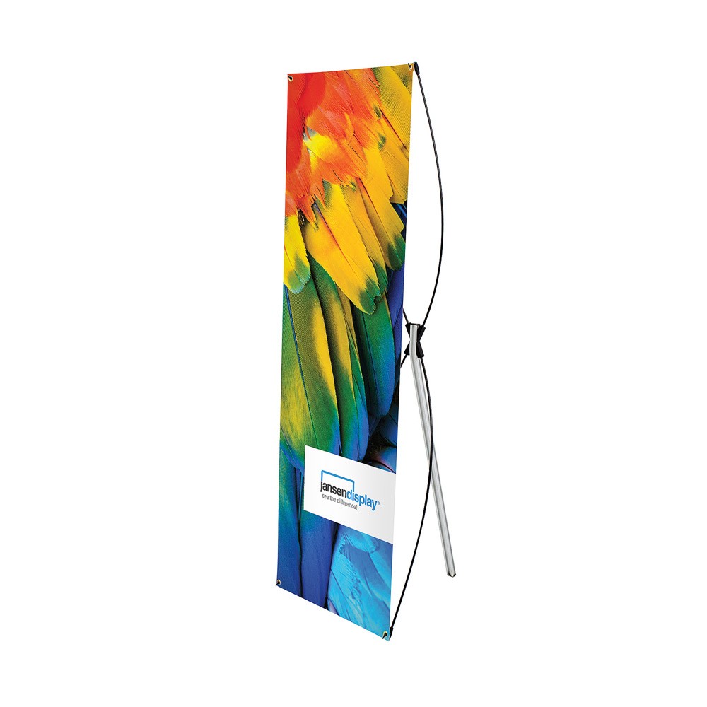 A termék a nevét az X alakban elhelyezkedő laminált tartókarokról kapta,melyek biztosítják, hogy a banner állványra tökéletesen illeszkedjen a poszter.Gyakori probléma, hogy az előre elkészített hirdetmény mérete és a kiválasztottbanner állvány nem kompatibilisek egymással. Ennek megoldására kínáljuk JansenDisplay X Banner és poszter termékkombinációnkat. A tökéletes reklámanyagkivitelezése érdekében webshopunkban akár komplett termékcsomag összeállításais lehetséges: csupán töltse fel nyomtatási adatait a nyomtatási sablonalapján. Prémium állványunkat pedig a reklámposzterrel együtt újrahasznosítottnejlonba csomagolva kiszállítjuk Önnek.