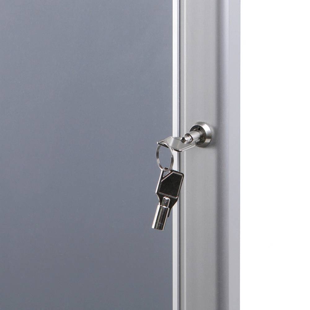 A vitrint két kulcs biztosítja, ami garantálja a poszterek biztonságát és megakadályozza az illetéktelen hozzáférést. Ennek köszönhetően ideális választás nyilvános helyekre, ahol fontos a biztonság és a védelem. A termék beltéri és fedett kültéri használatra is alkalmas, ami széleskörű felhasználási lehetőségeket biztosít.