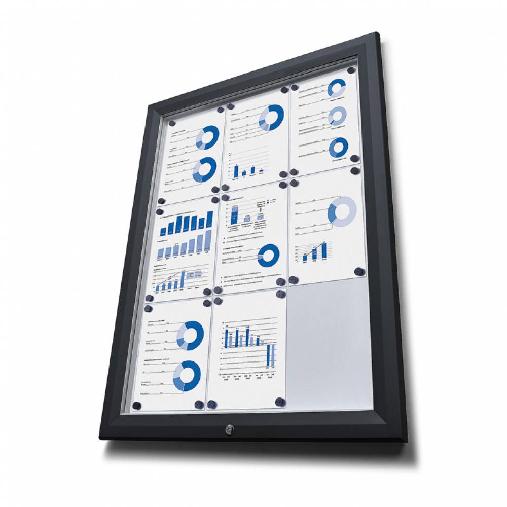 A vitrin egyik legnagyobb előnye a rugalmassága: lehetővé teszi, hogy az üzeneteit könnyedén kihelyezze a para háttámlával ellátott verzió esetén tűzéssel, vagy az acél hátlap verziónál mágnesekkel. Ezáltal különféle kommunikációs igényeket is kielégít, legyen szó információk közléséről, hirdetések elhelyezéséről vagy akár fontos üzenetek megosztásáról egy forgalmas helyszínen.